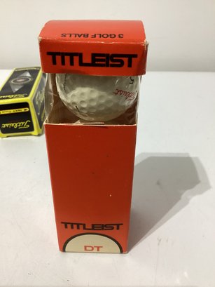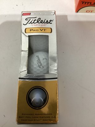4 Packages Of A Collection Of Golf Balls From Brands Titleist And Bridgestone