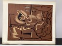 Picasso Linogravure Ltd Ed. "Femme Couchee Et Guitariste" Book-plate