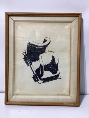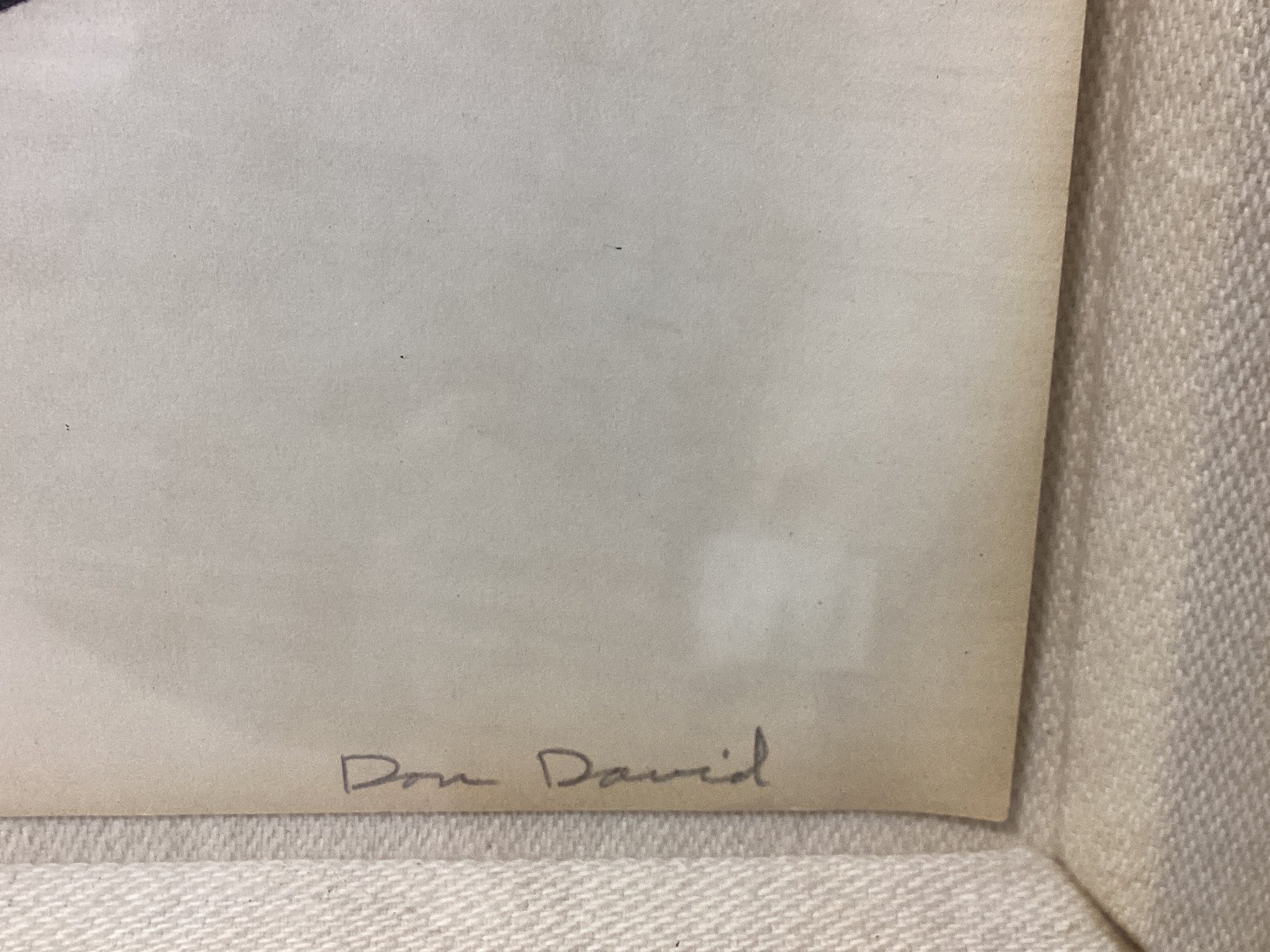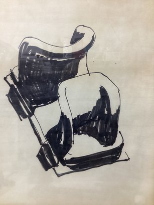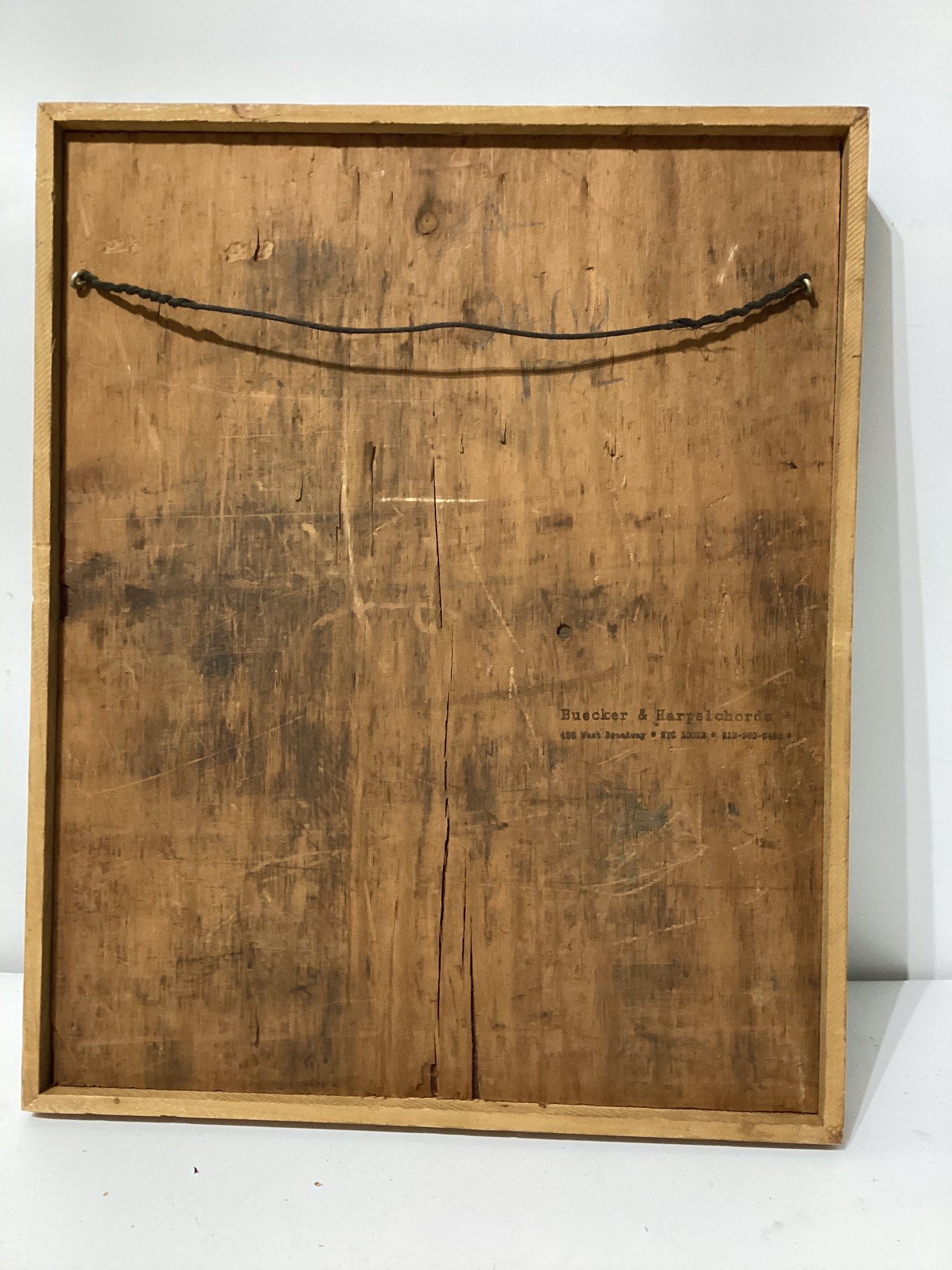 toning, tape bleed, foxing and staining, noticeable under the glass. Signed lower right, with a label affixed on the frame. Framed by Bobby Buecker, with the Buecker and Harpsichords stamp and pencil notations, 1972 verso. From the NYC SoHo Estate of Robert Bobby Buecker