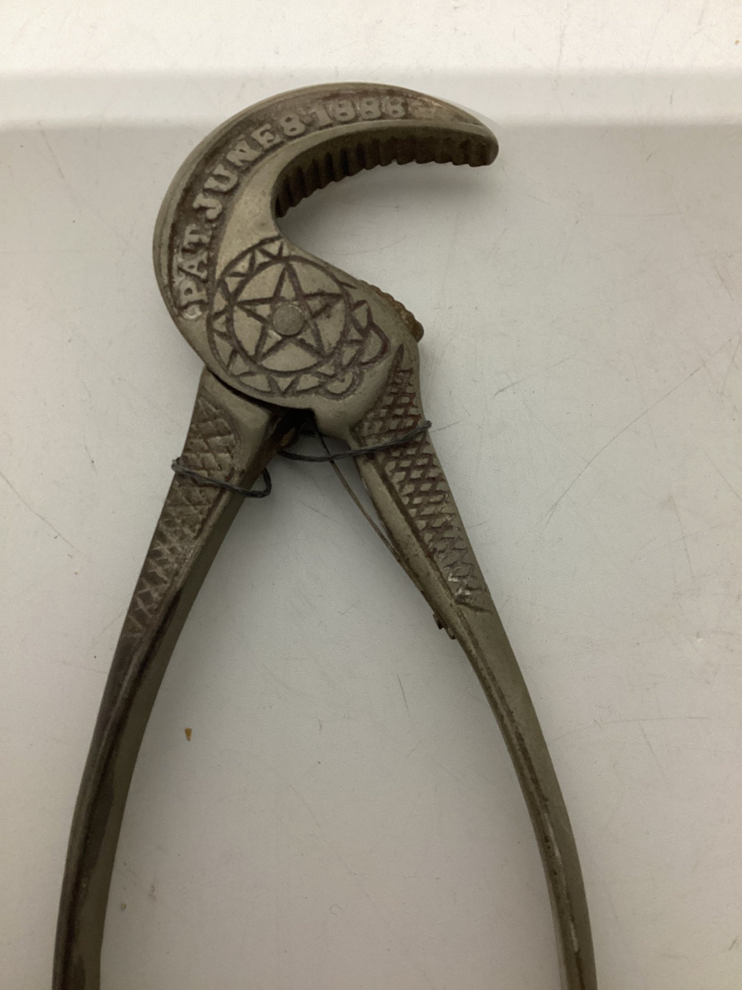 Nutbuster" parrot nose pliers, patented on June 8, 1898.