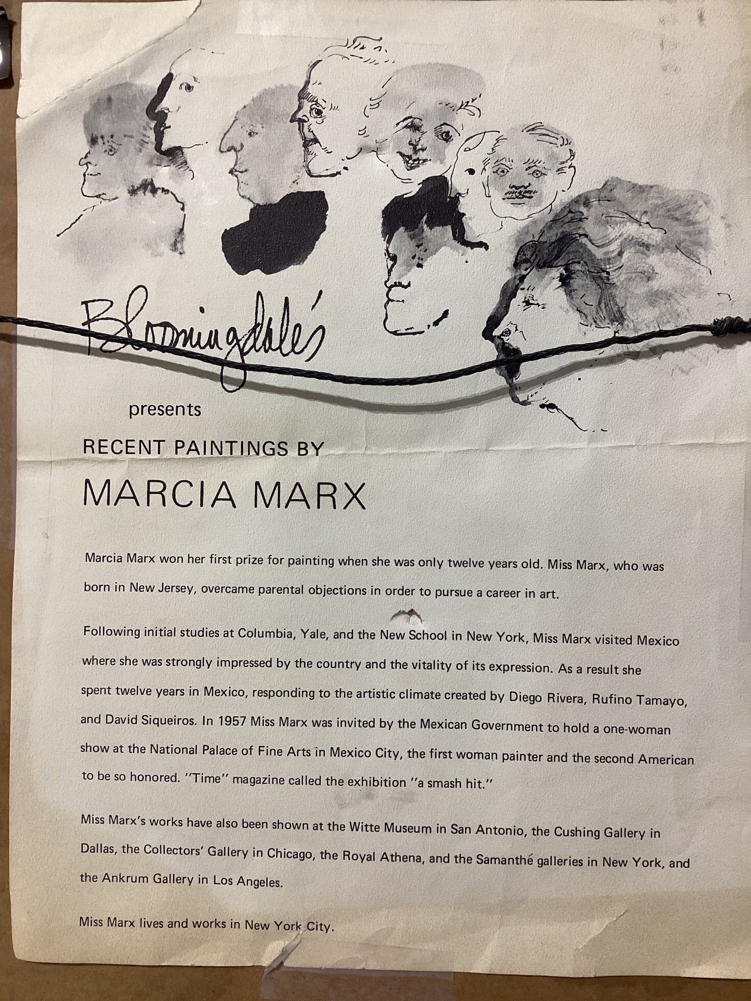 Bloomingdale's Artist sheet and Vernissage Henri Bendel label on verso