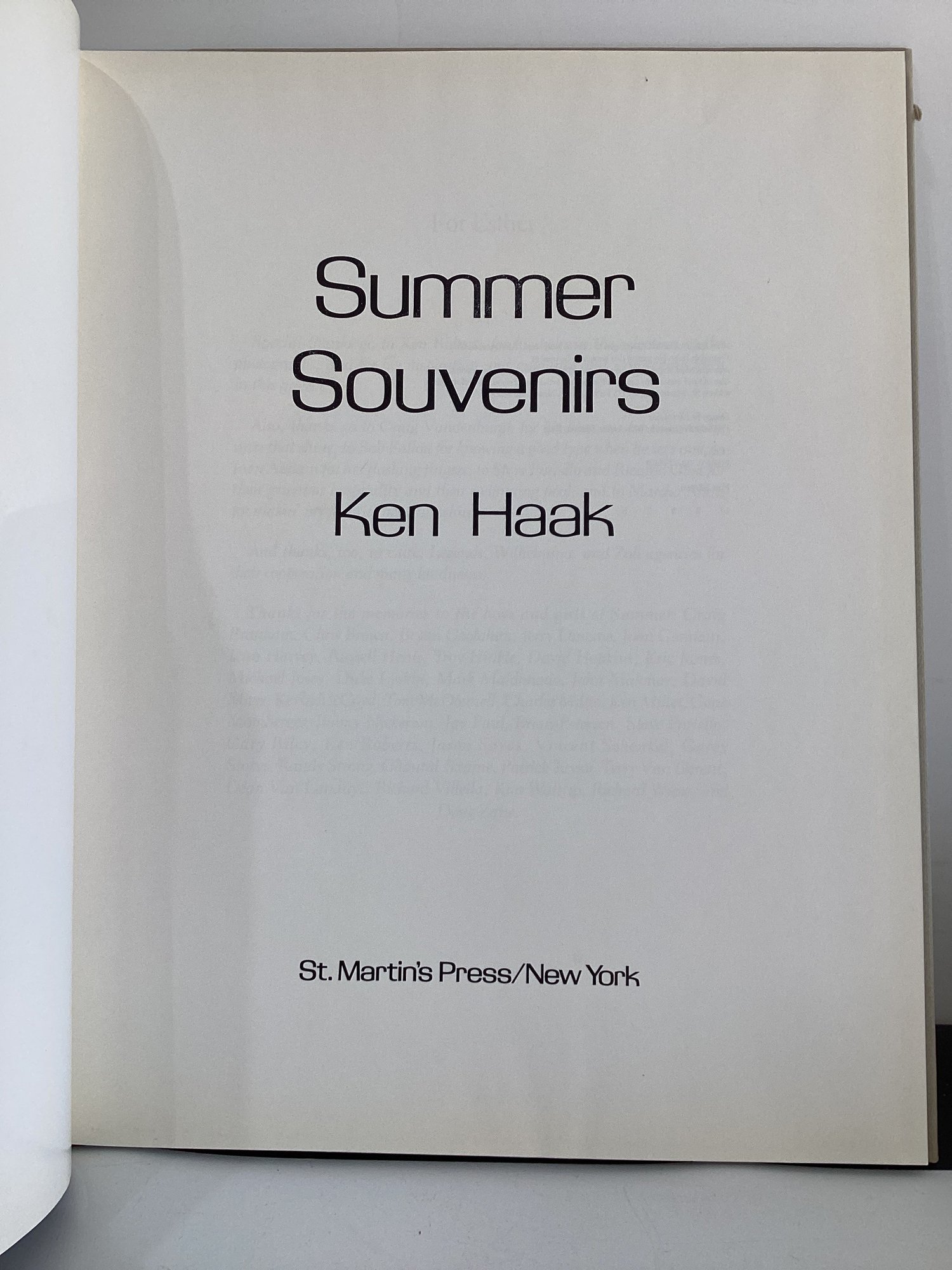 "Summer Souvenirs" By Ken Haak, Published By St. Martin's Press