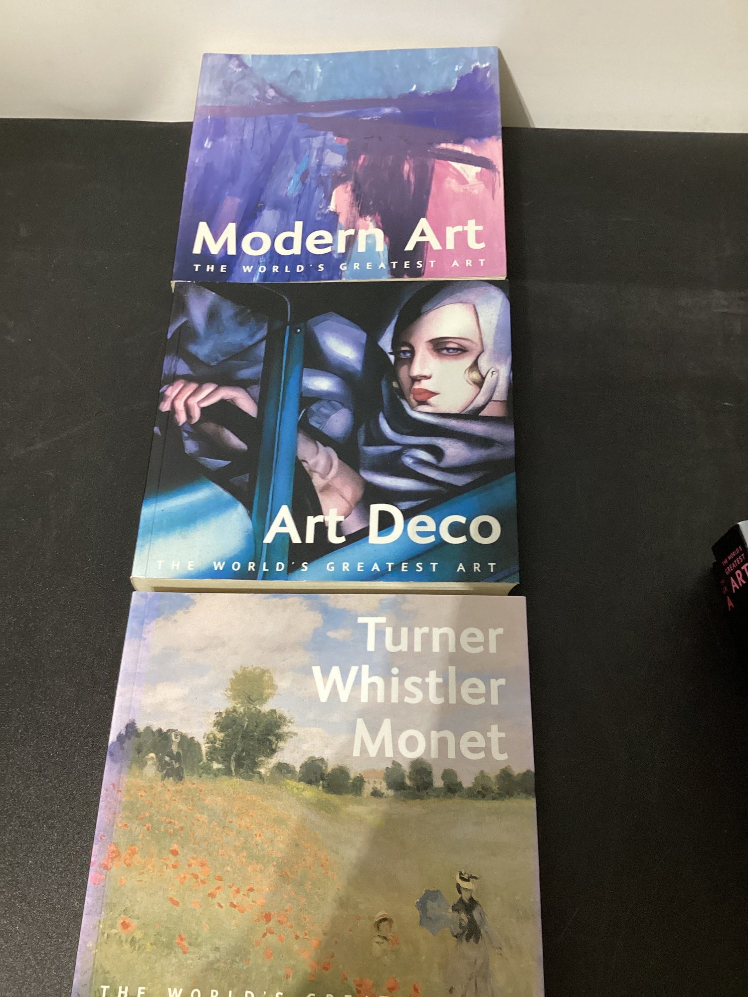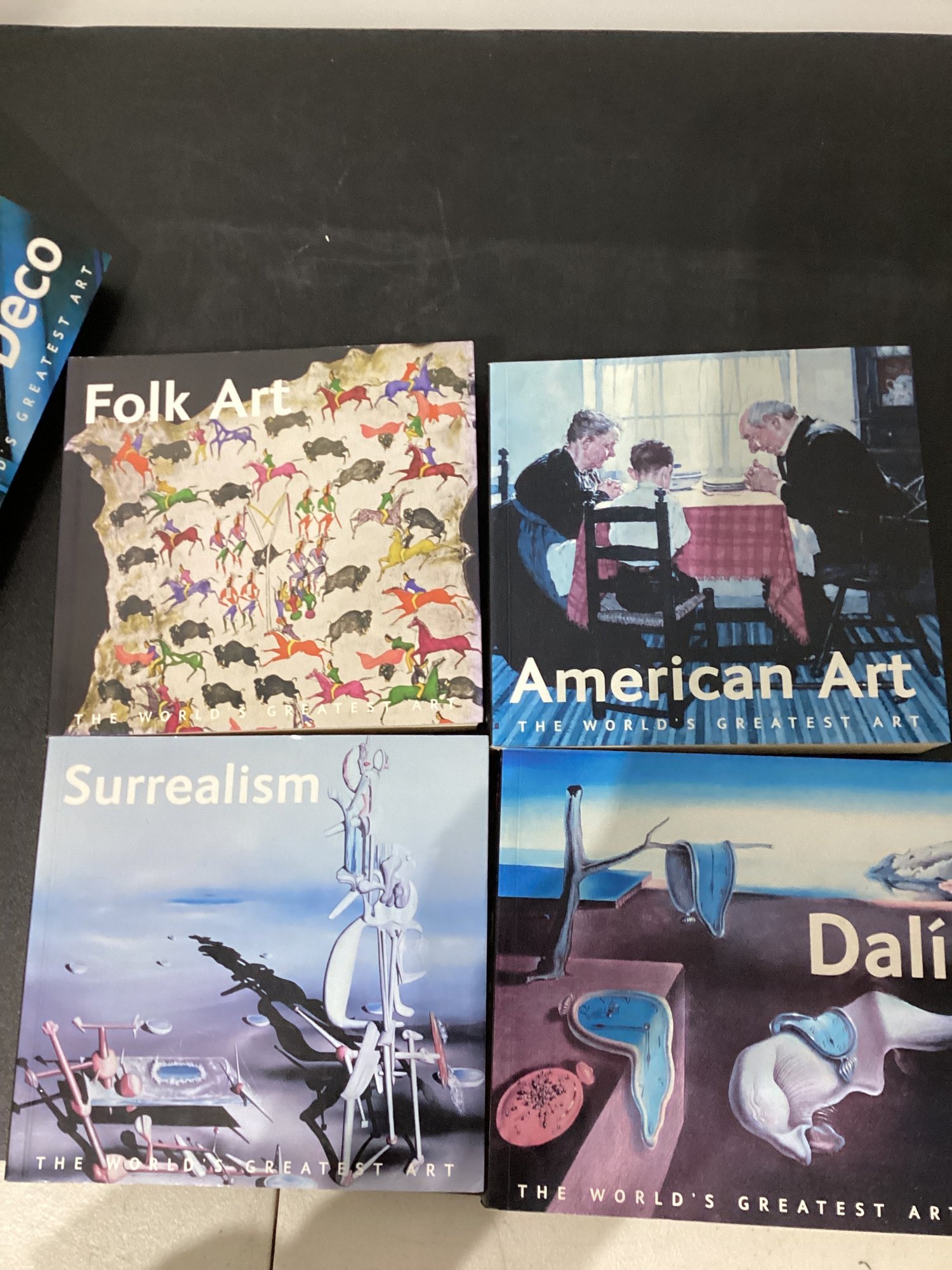 featuring volumes on artists and movements like DalĂ, Turner, Whistler, Monet, Surrealism, Art Deco, Folk Art, and Modern Art
