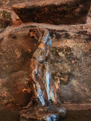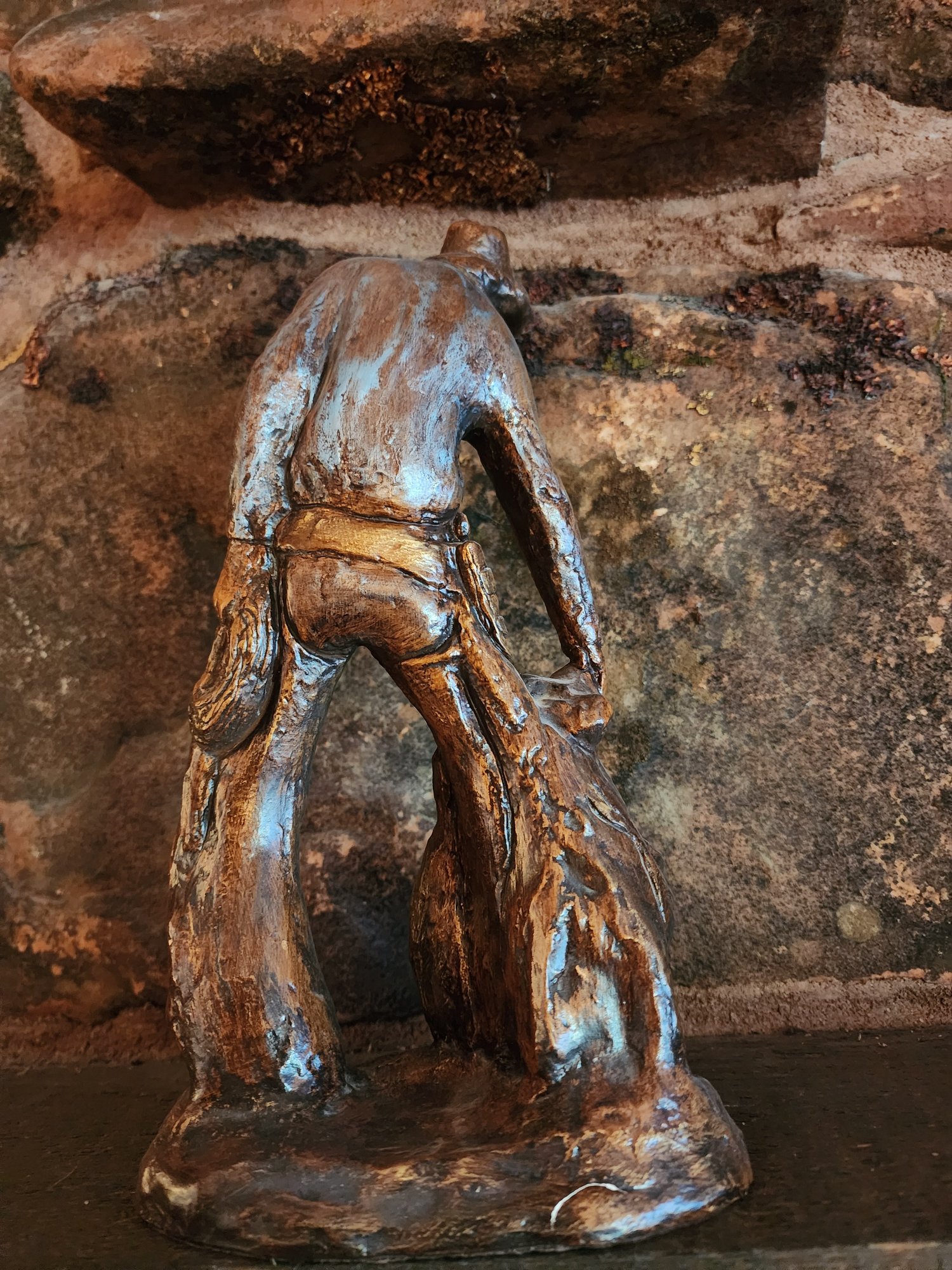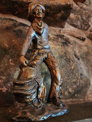 Great vintage western Cowboy statue in the style of Michael Garmen, no makers marks can be found. Composite with a brass finish