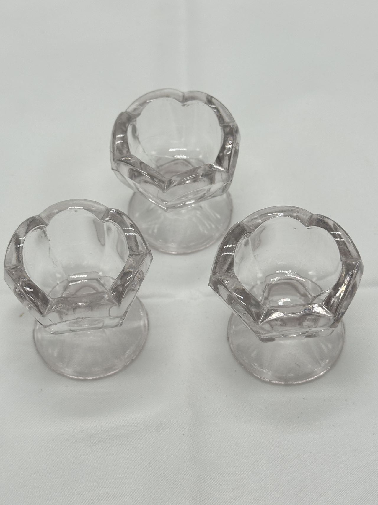 Set of 3 matching Crystal Clear with a thick pattern glass or pressed glass.