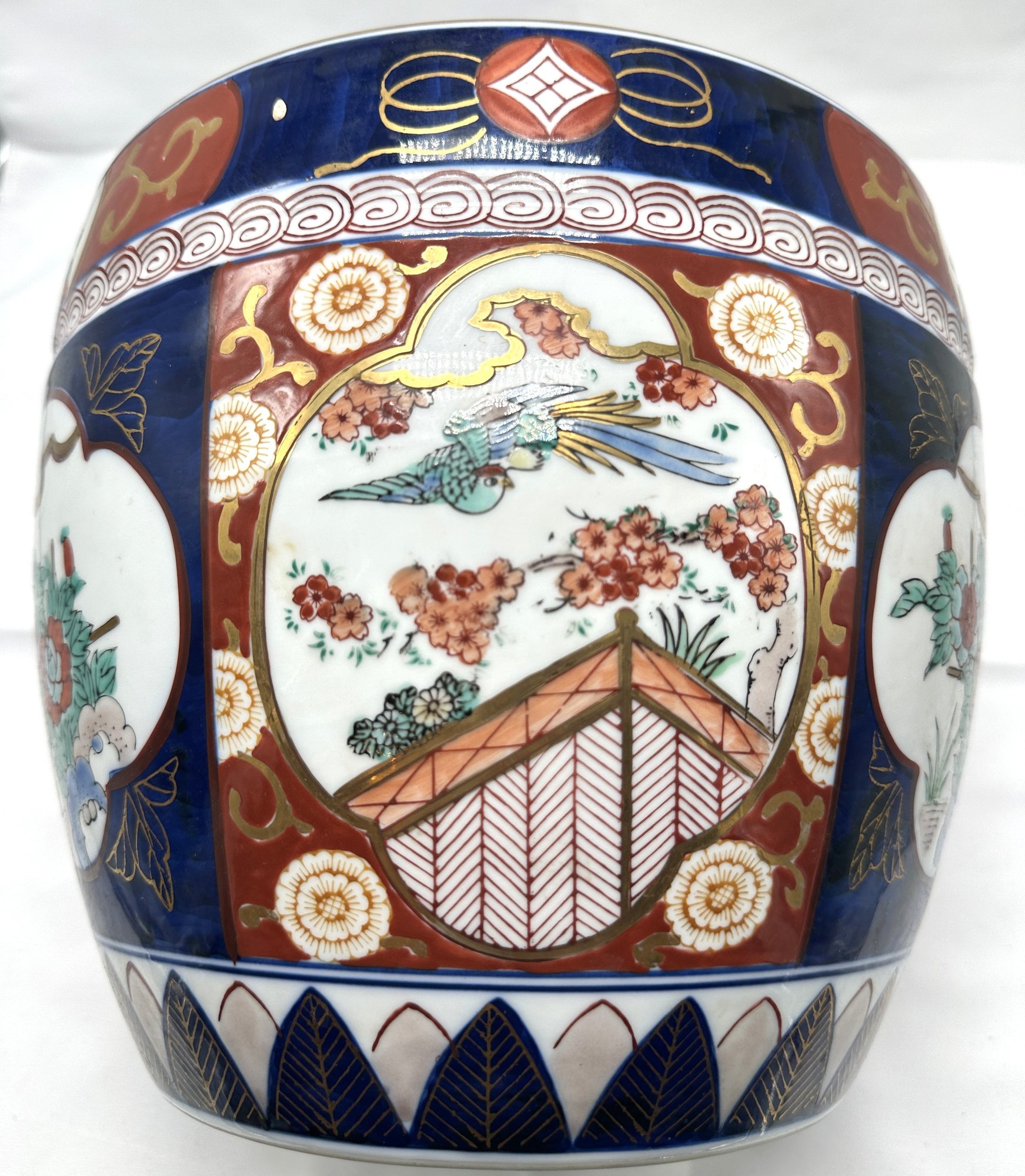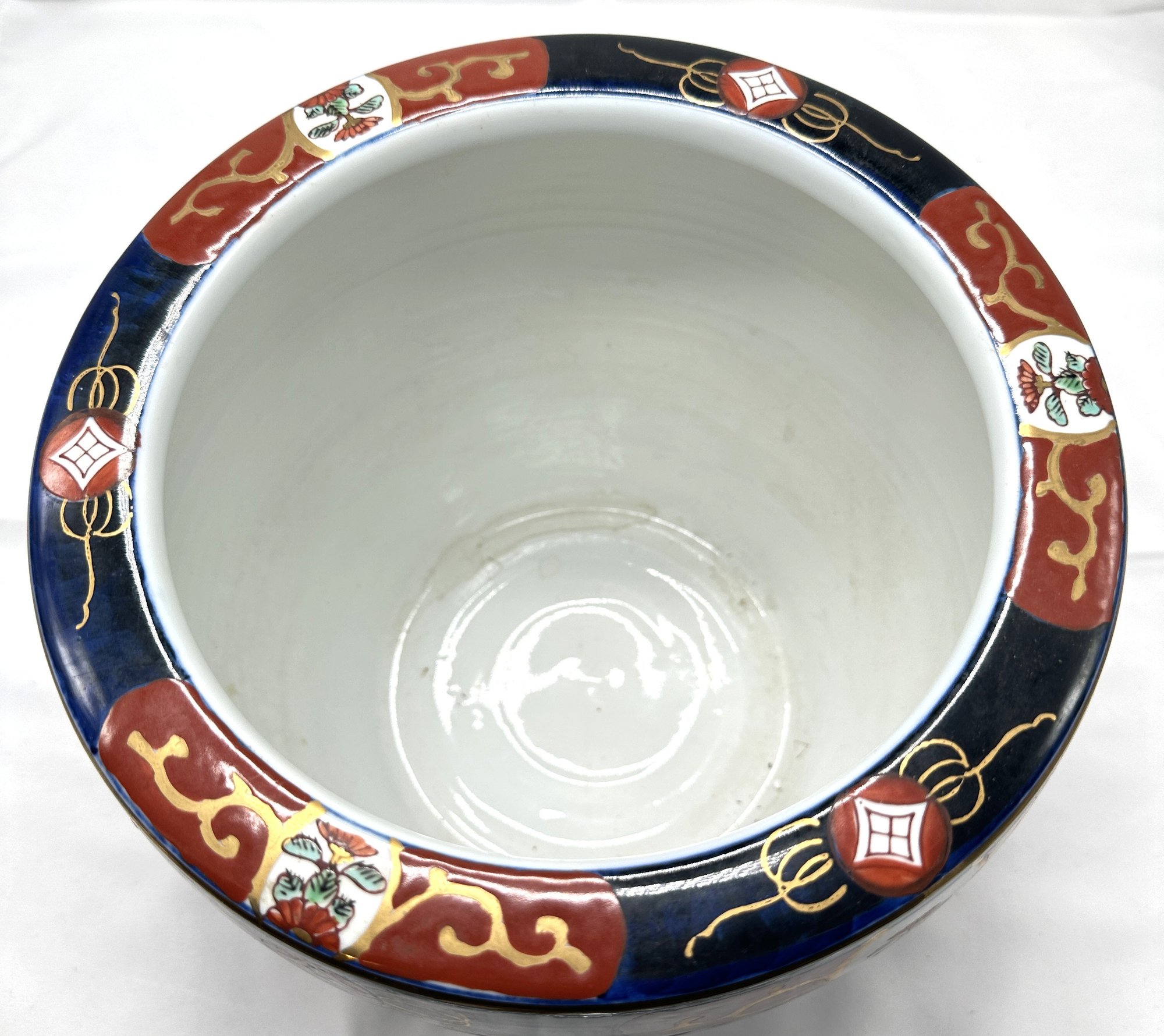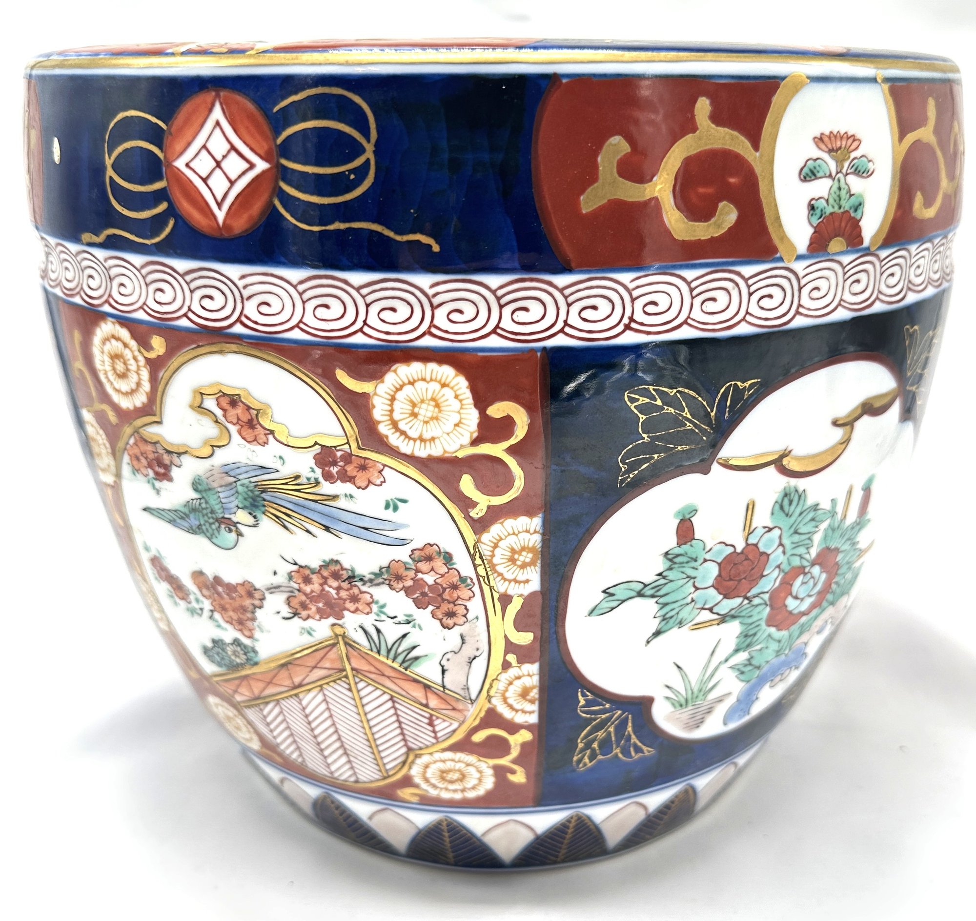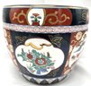 About 8.5 inches in height, 9.5 inches width of the top, 6.5 inches width of the bottom