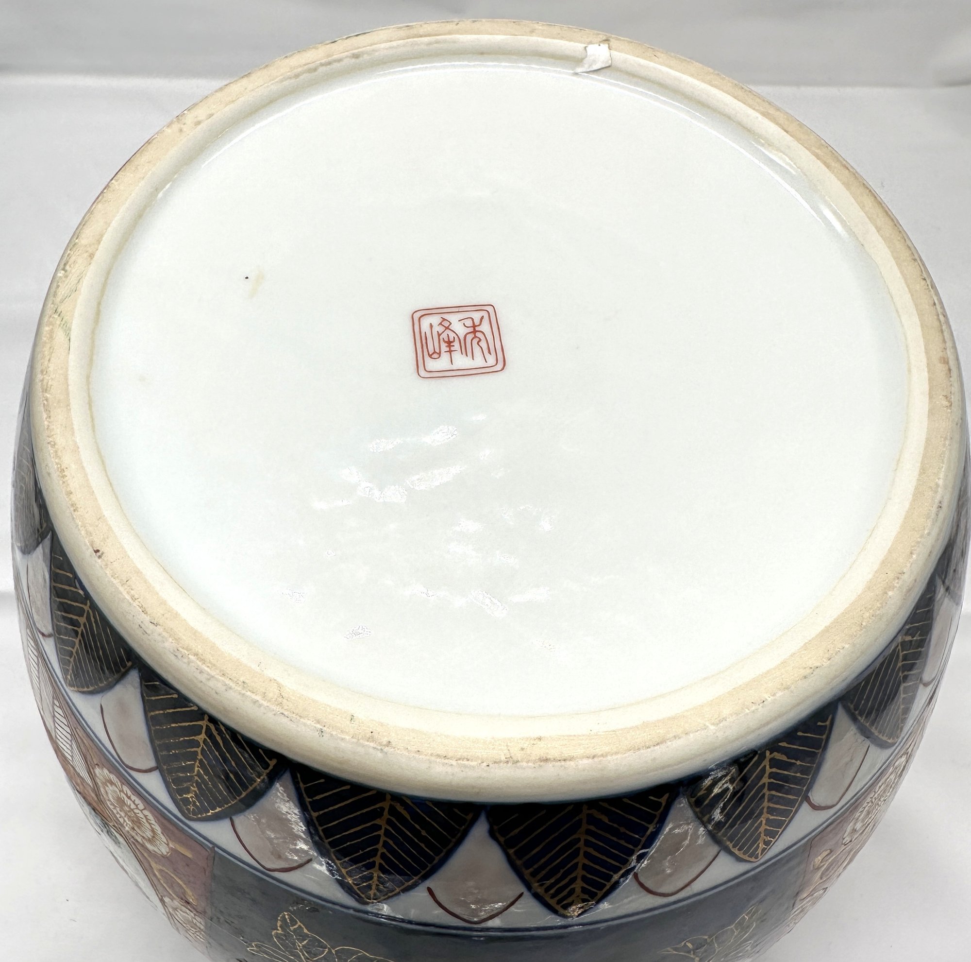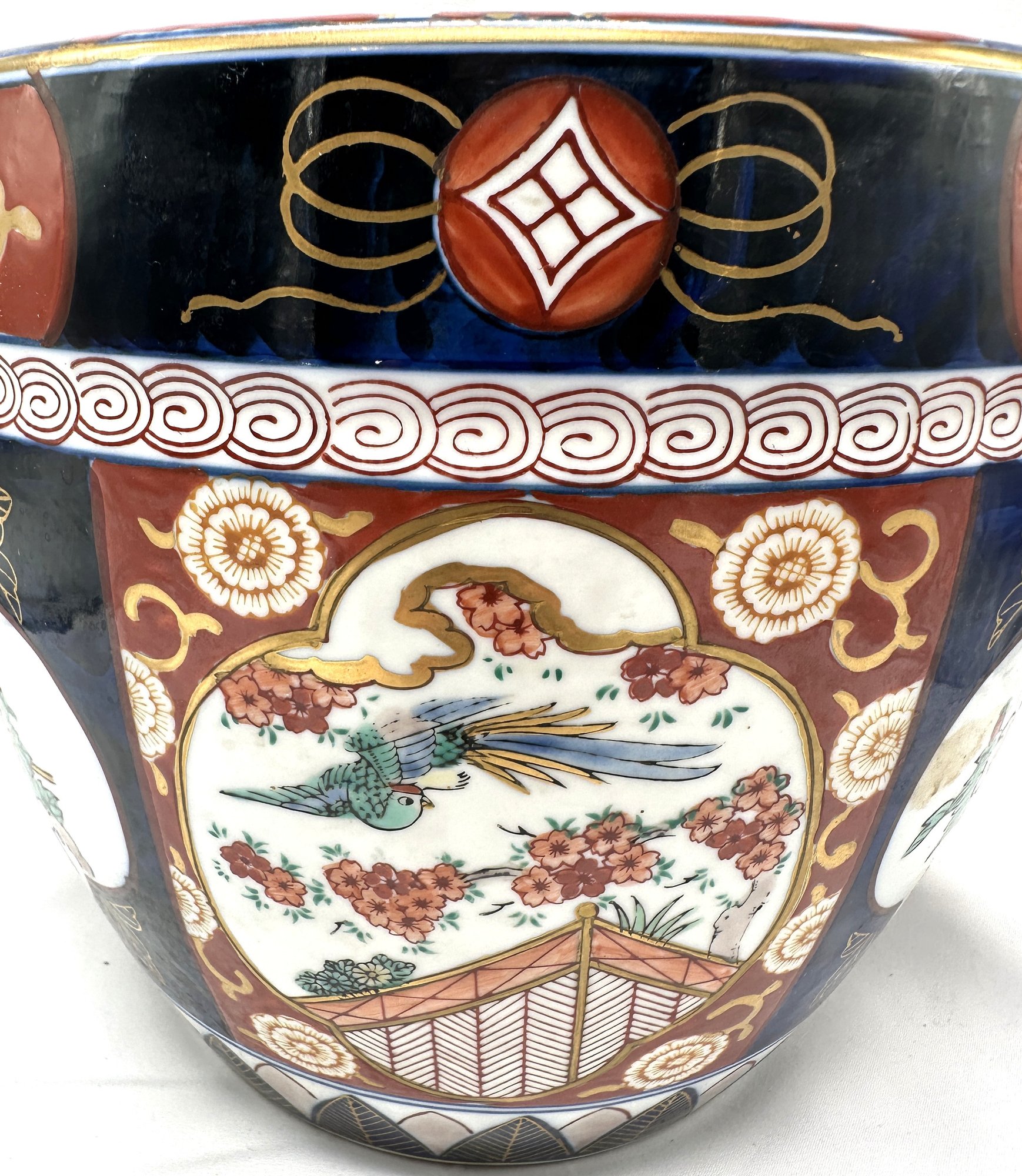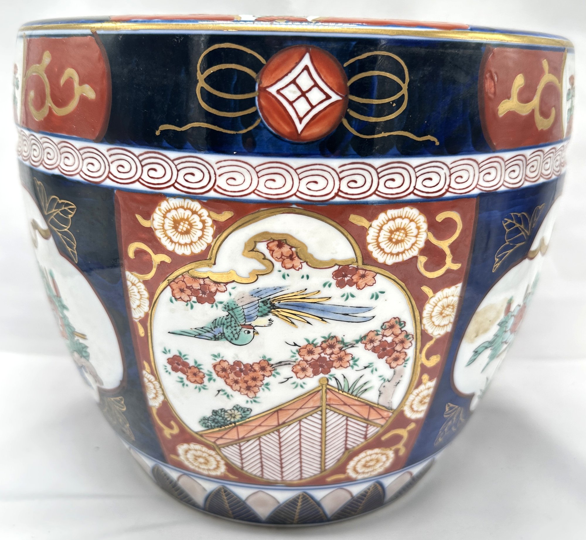 About 8.5 inches in height, 9.5 inches width of the top, 6.5 inches width of the bottom
