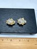Vintage Gold Plated Ribbed Leaf With Clear Crystal Rhinestone Clip Earrings
