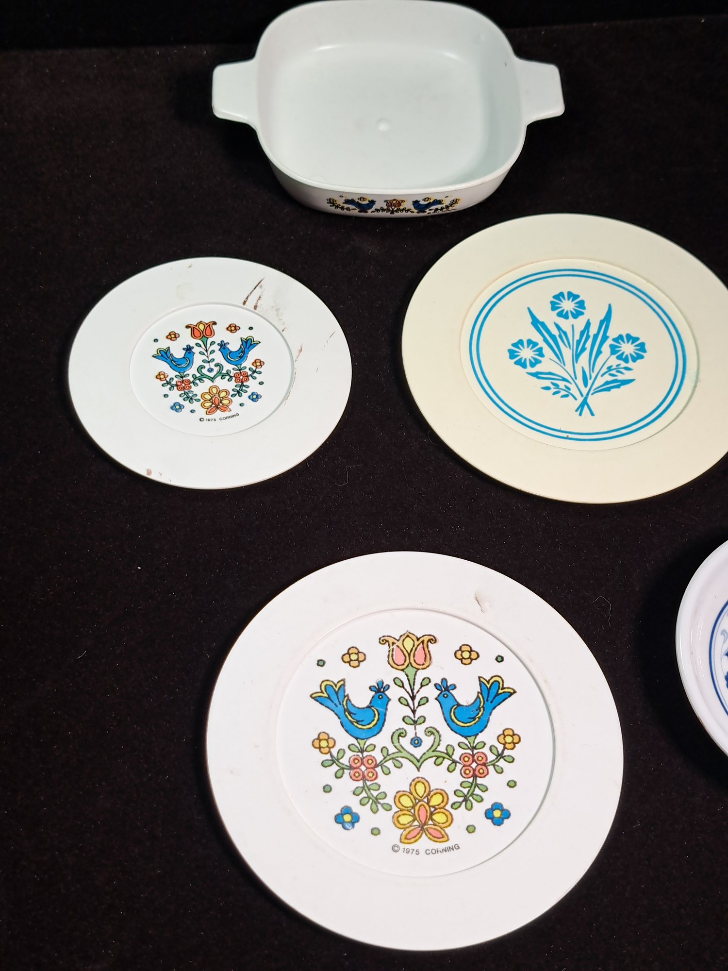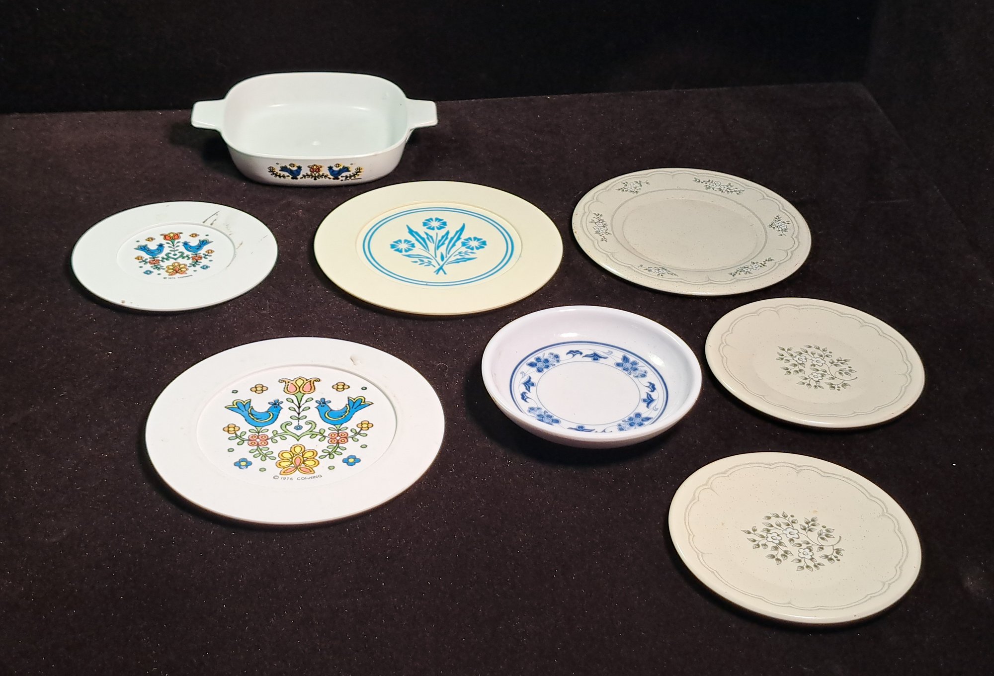 VINTAGE CORNING WARE BLUE CORNFLOWER CHILTON PLASTIC TOY DISHES BUNDLED LOT