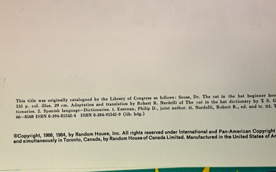 1966 Cat in the Hat Beginner Book Dictionary in Spanish Illustrated-Hardcover