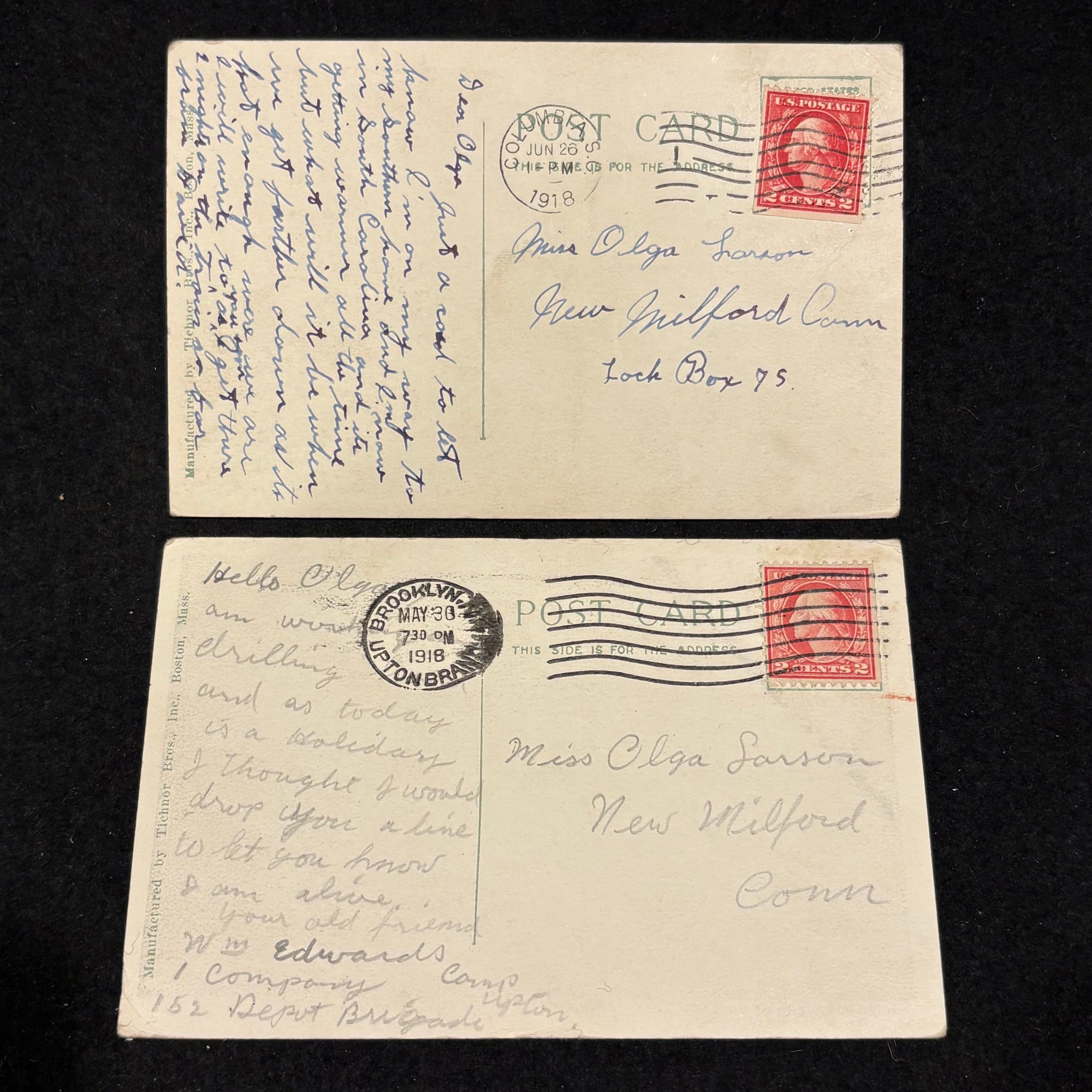 (2) Camp Upton, Long Island 1918 Antique WWI Military Postcards