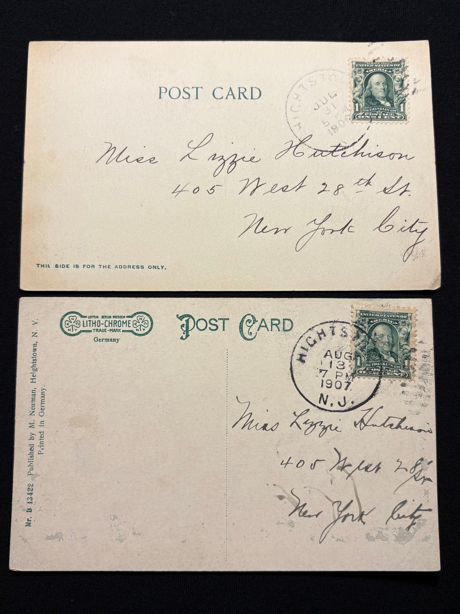 (2) Hightstown, New Jersey Antique Postcards
