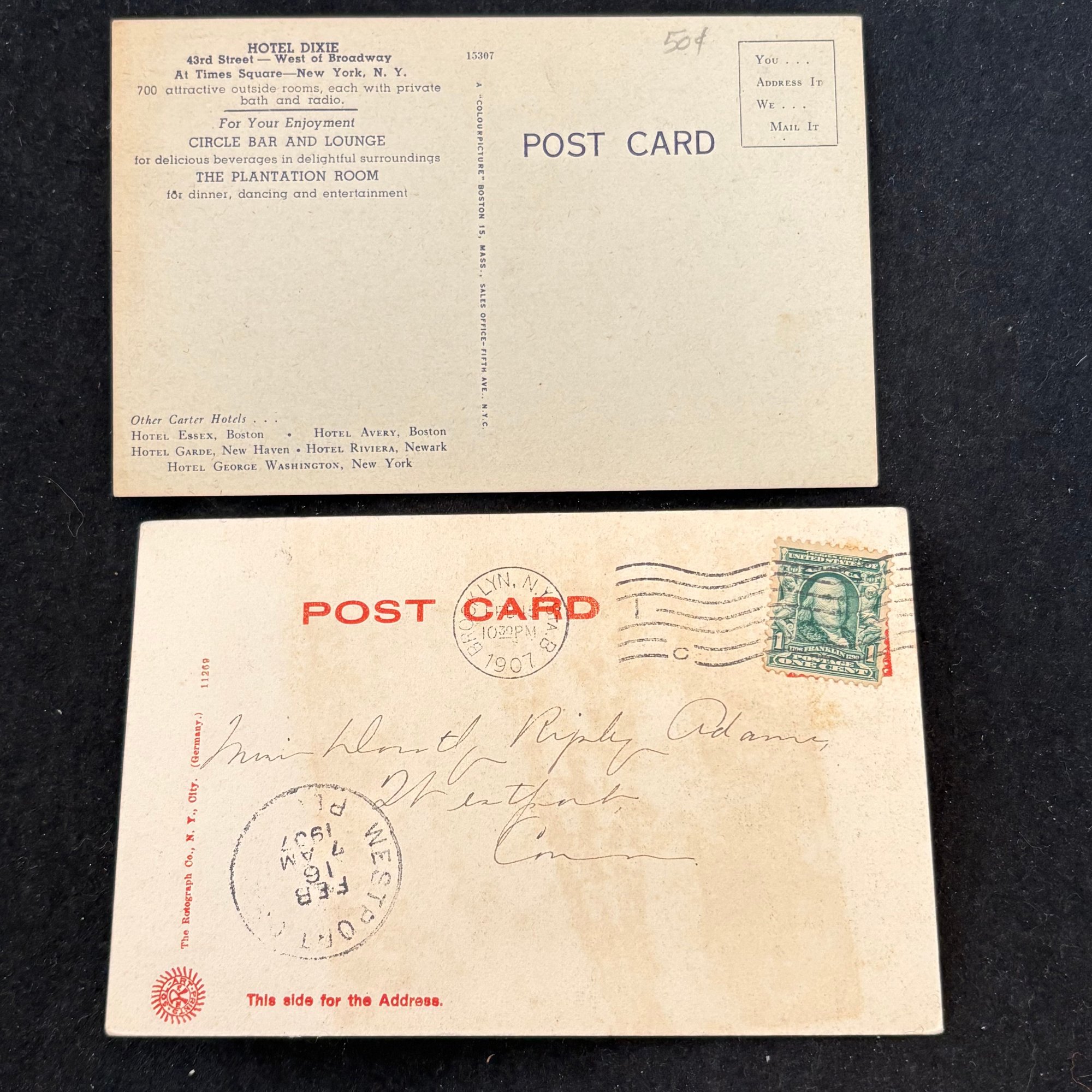 (2) Vintage New York City Hotel Postcards