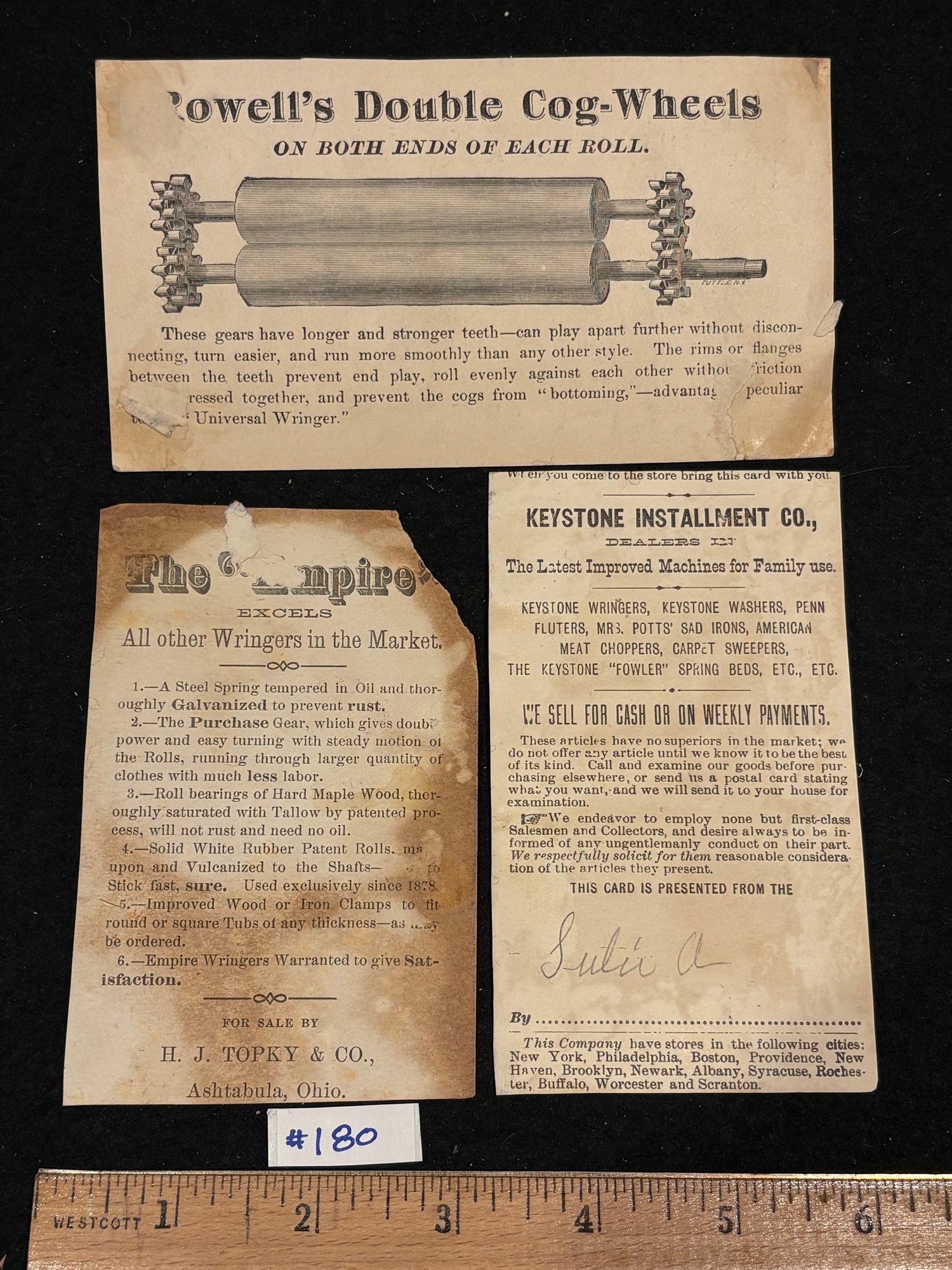 (3) Clothing Wringers Antique Victorian Trade Cards