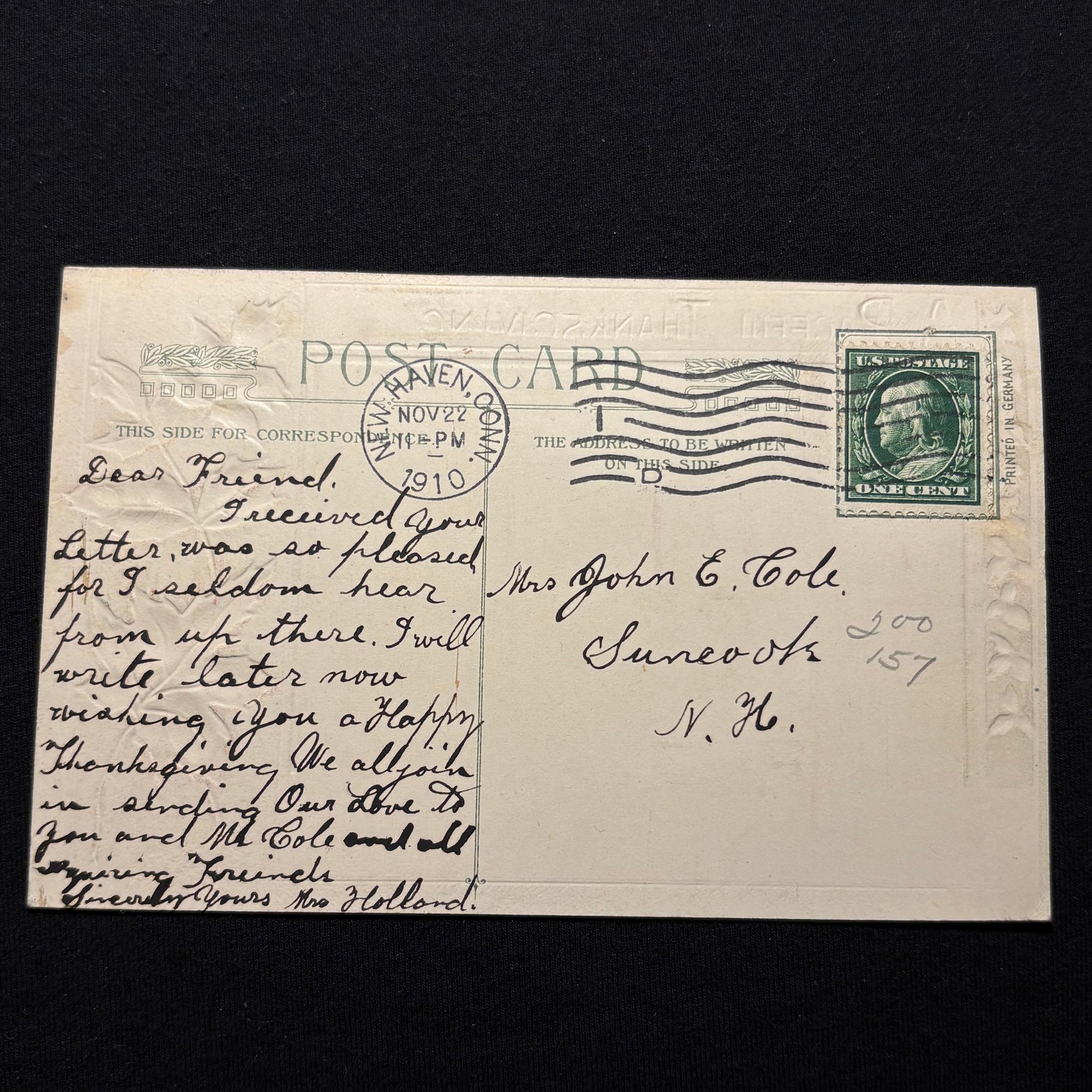 "A Peaceful Thanksgiving" 1910 Antique Postcard