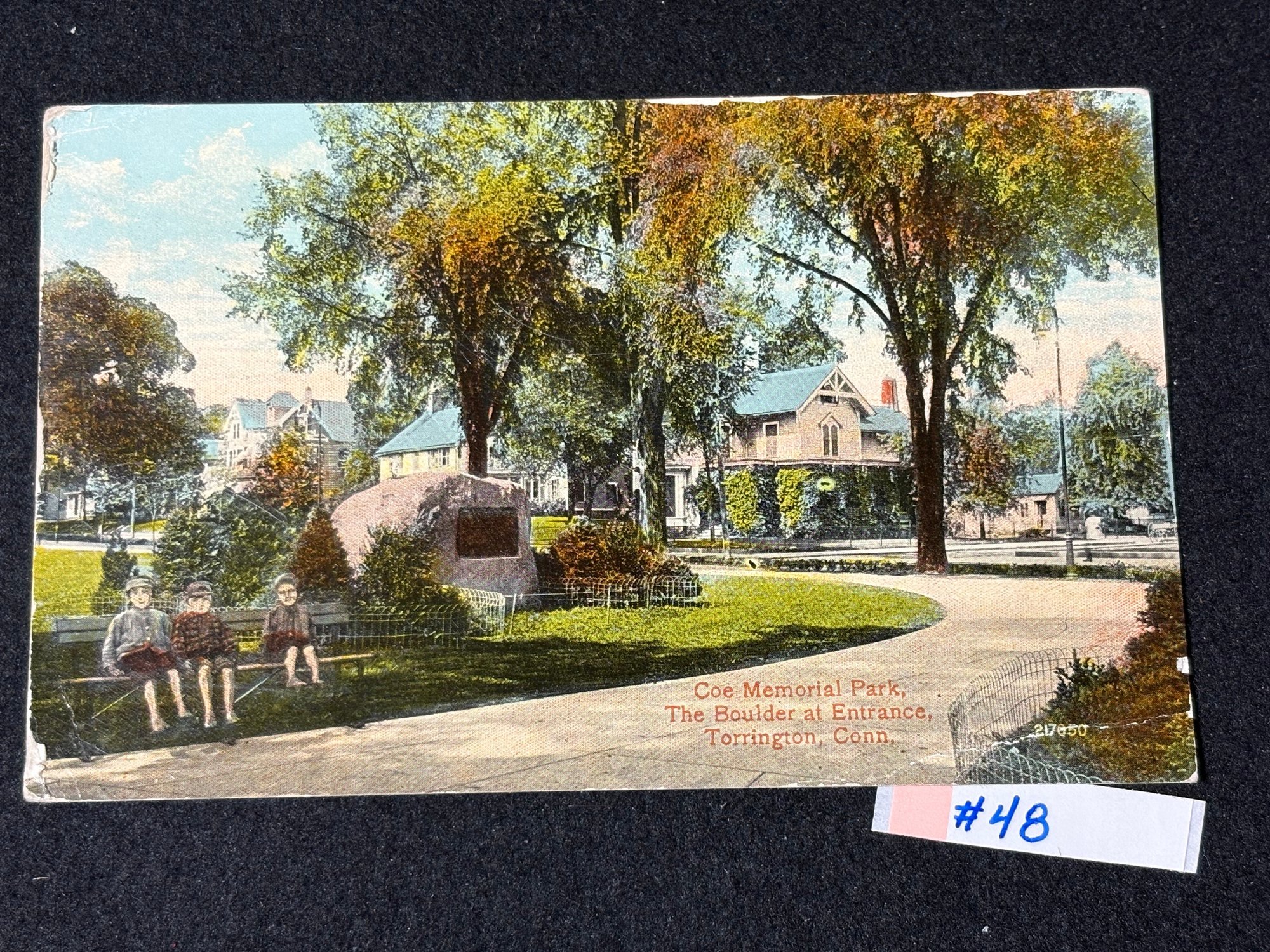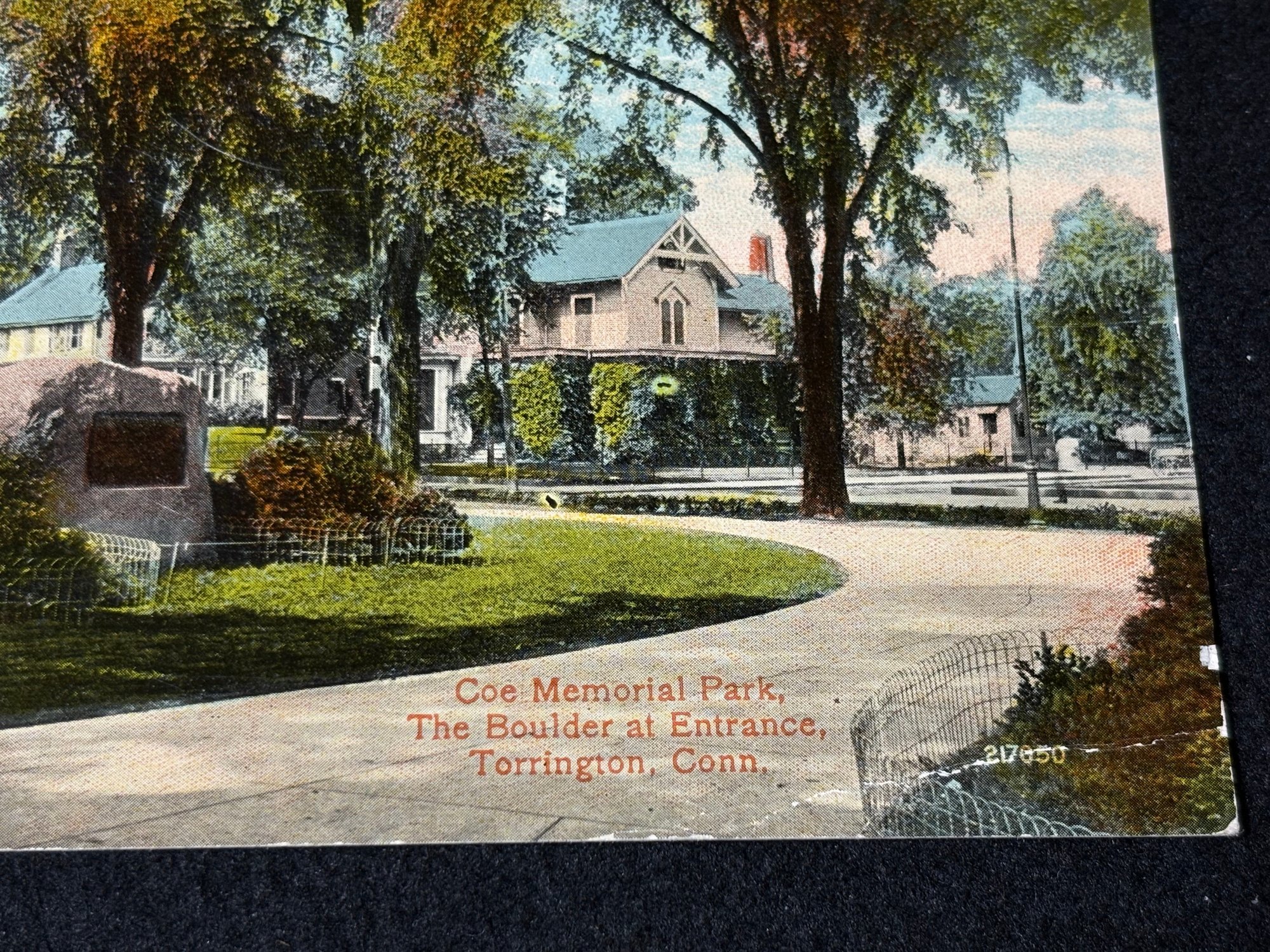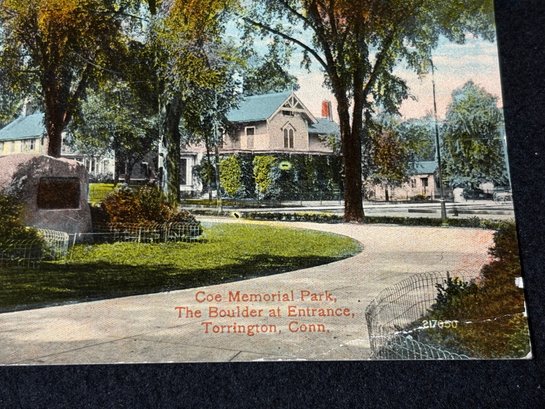 "Coe Memorial Park, The Boulder At Entrance" Torrington, Connecticut 1917 Antique Postcard