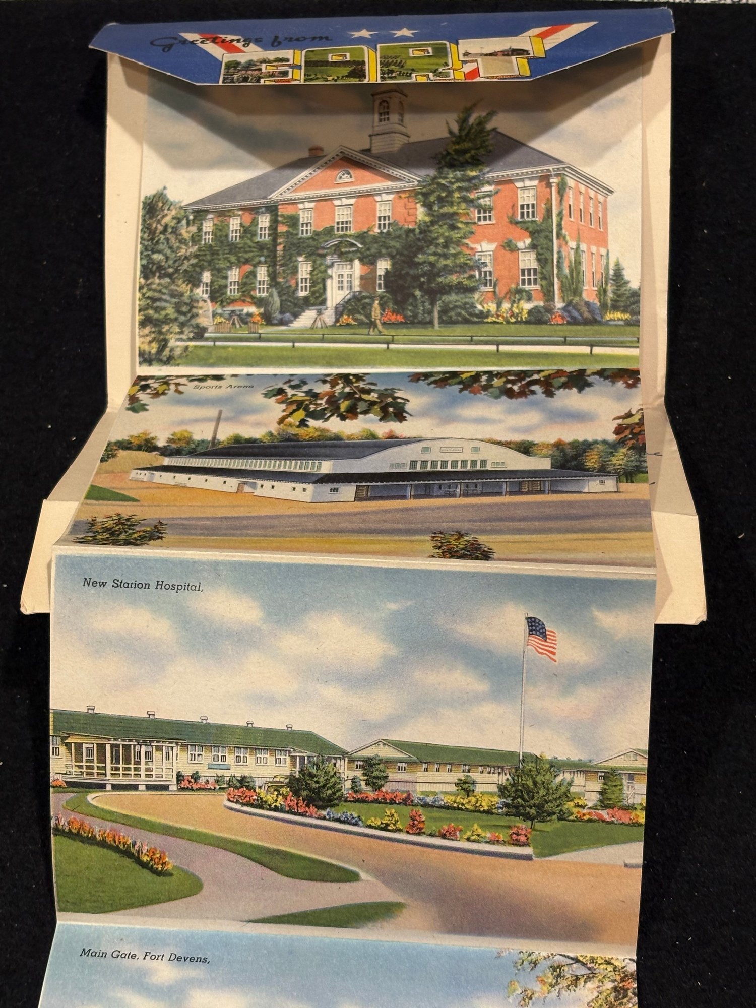 Fort Devens, MA Postcard Folder (1945) Vintage WWII Era