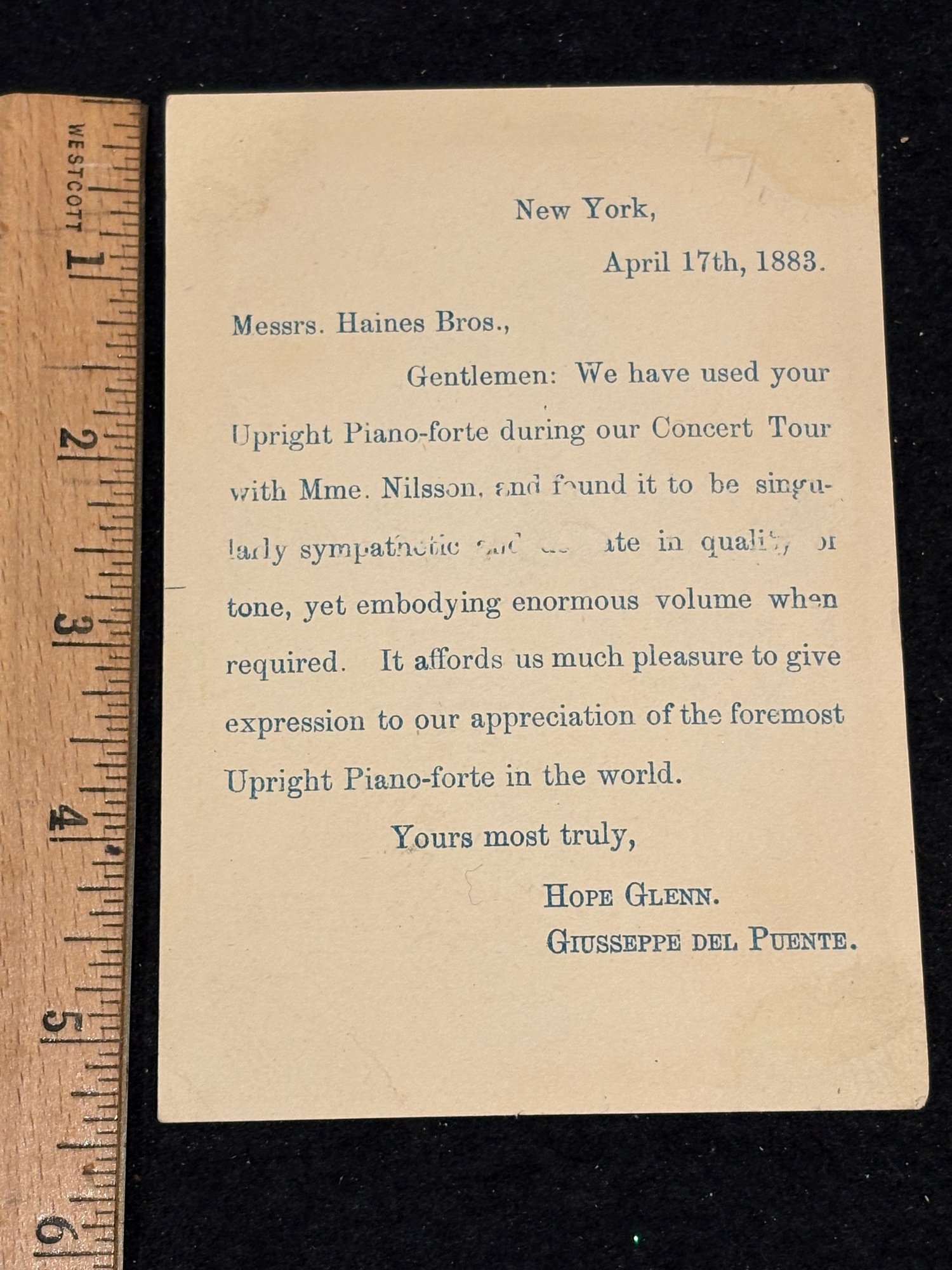Haines Brothers Piano Advertising Antique Victorian Trade Card