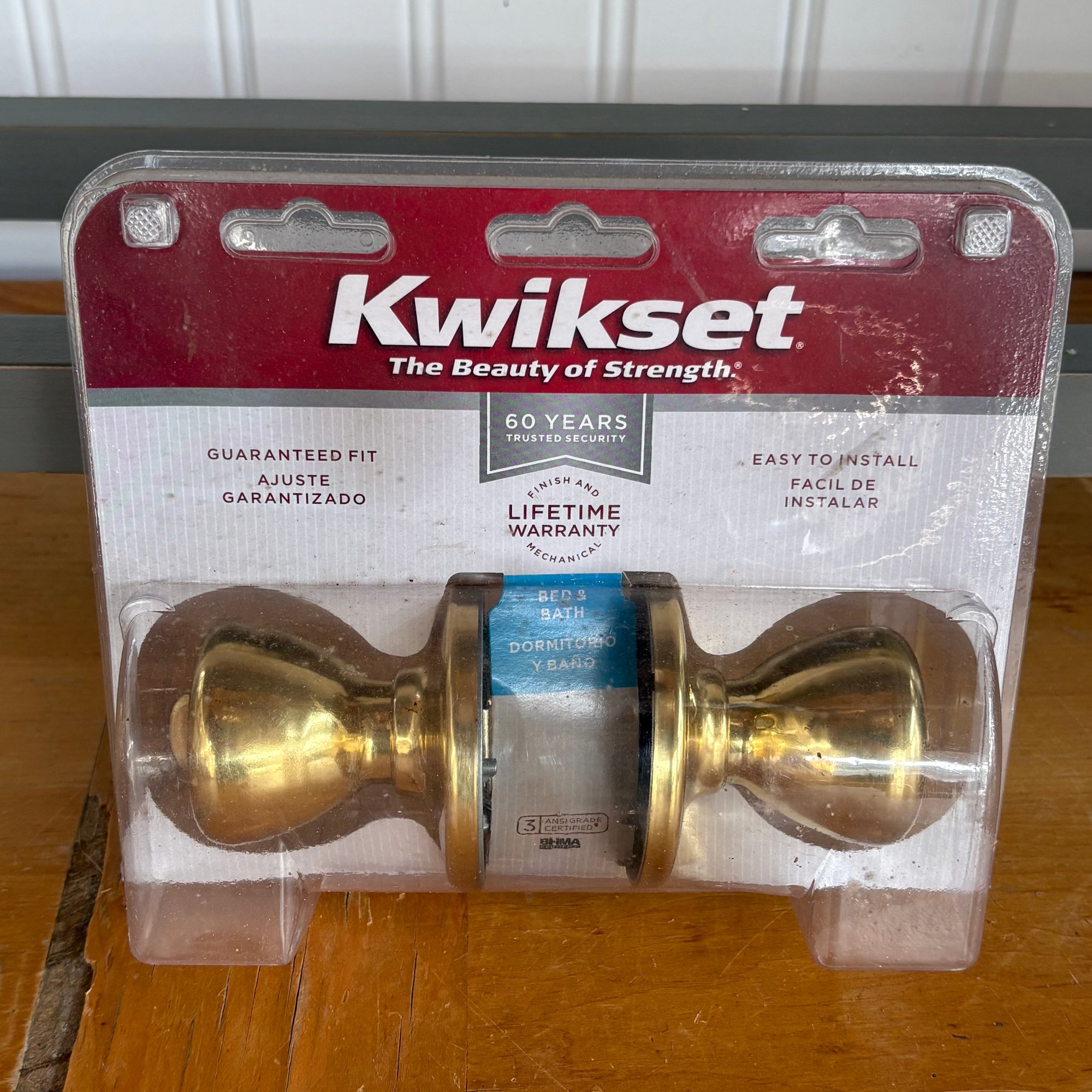 This is a Kwikset Tylo polished brass bed and bath privacy knob.