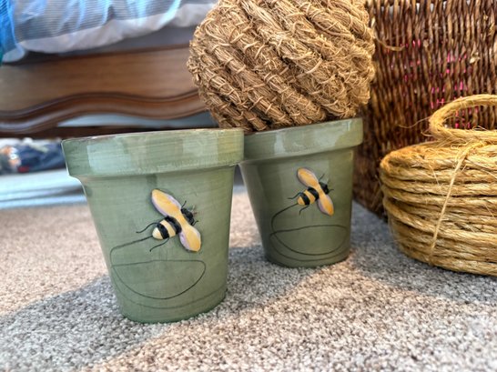 Pottery Barn BEE Flower Pots, Fancy Metal Picture Frame & More Basket Lot #5