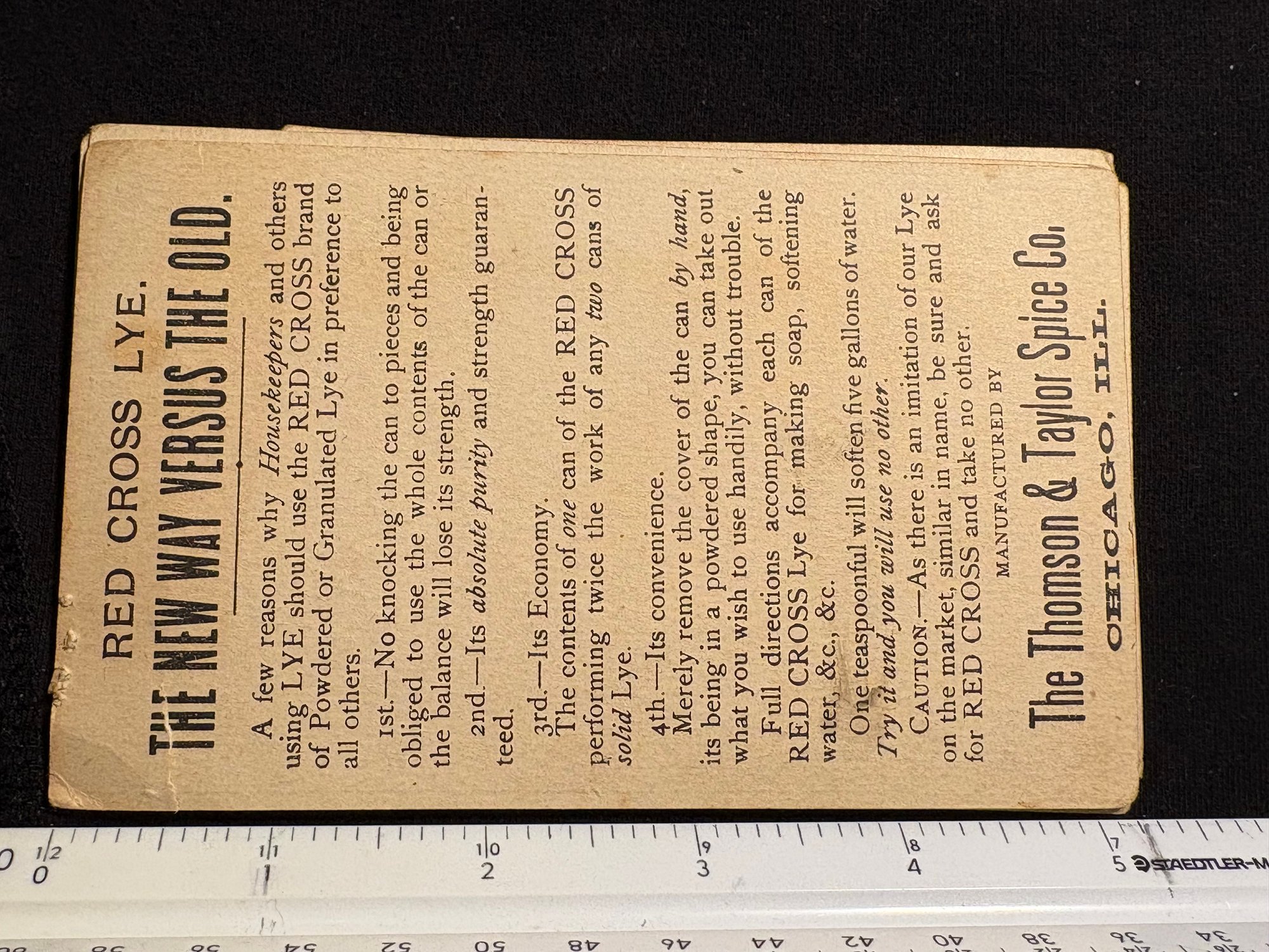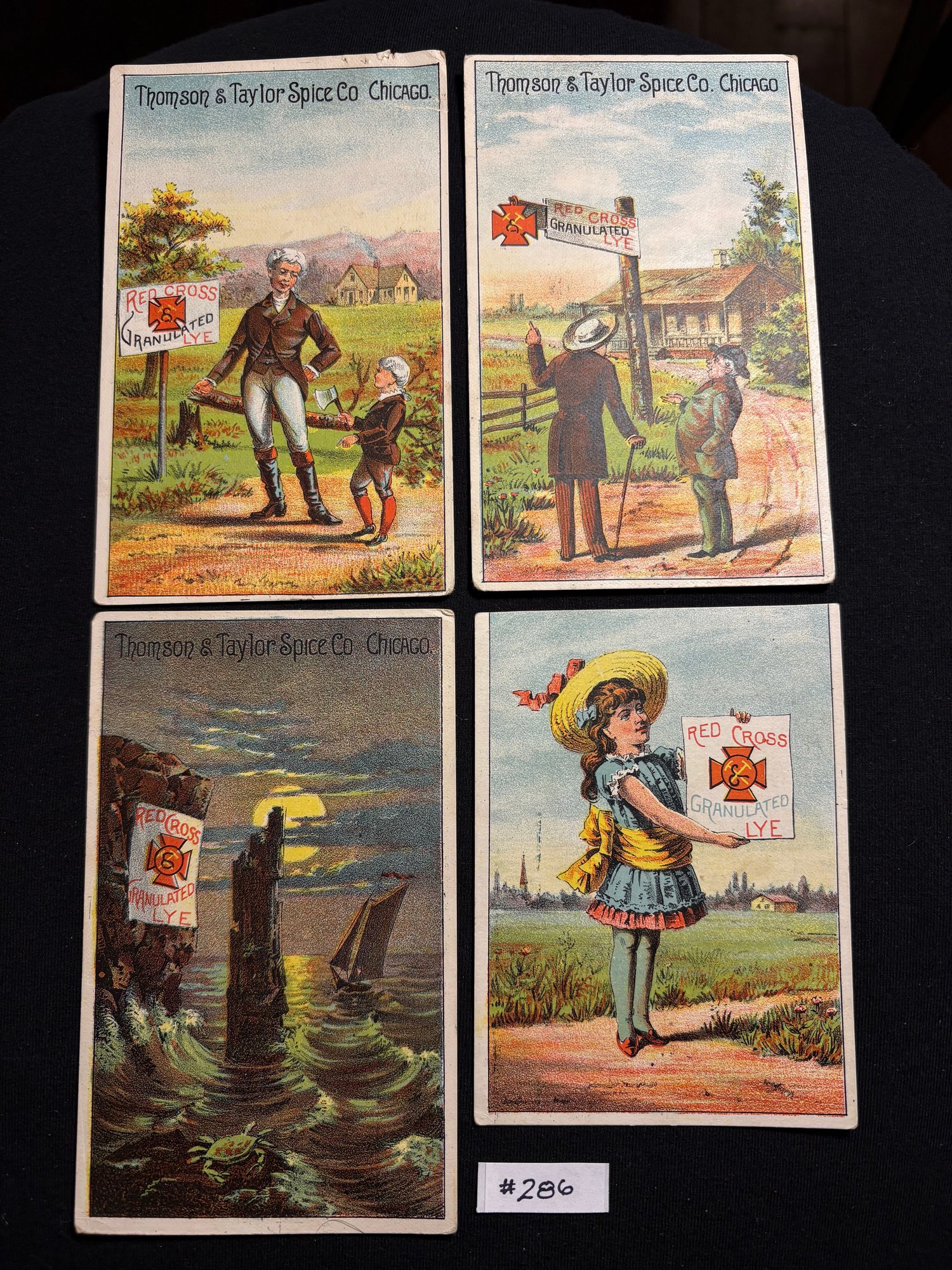 "Red Cross Lye" Thomson & Taylor Spice Co. (Lot Of 4) Victorian Trade Cards