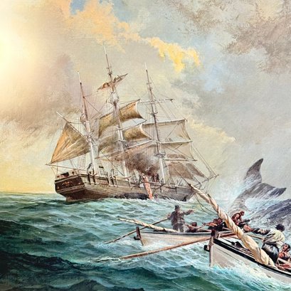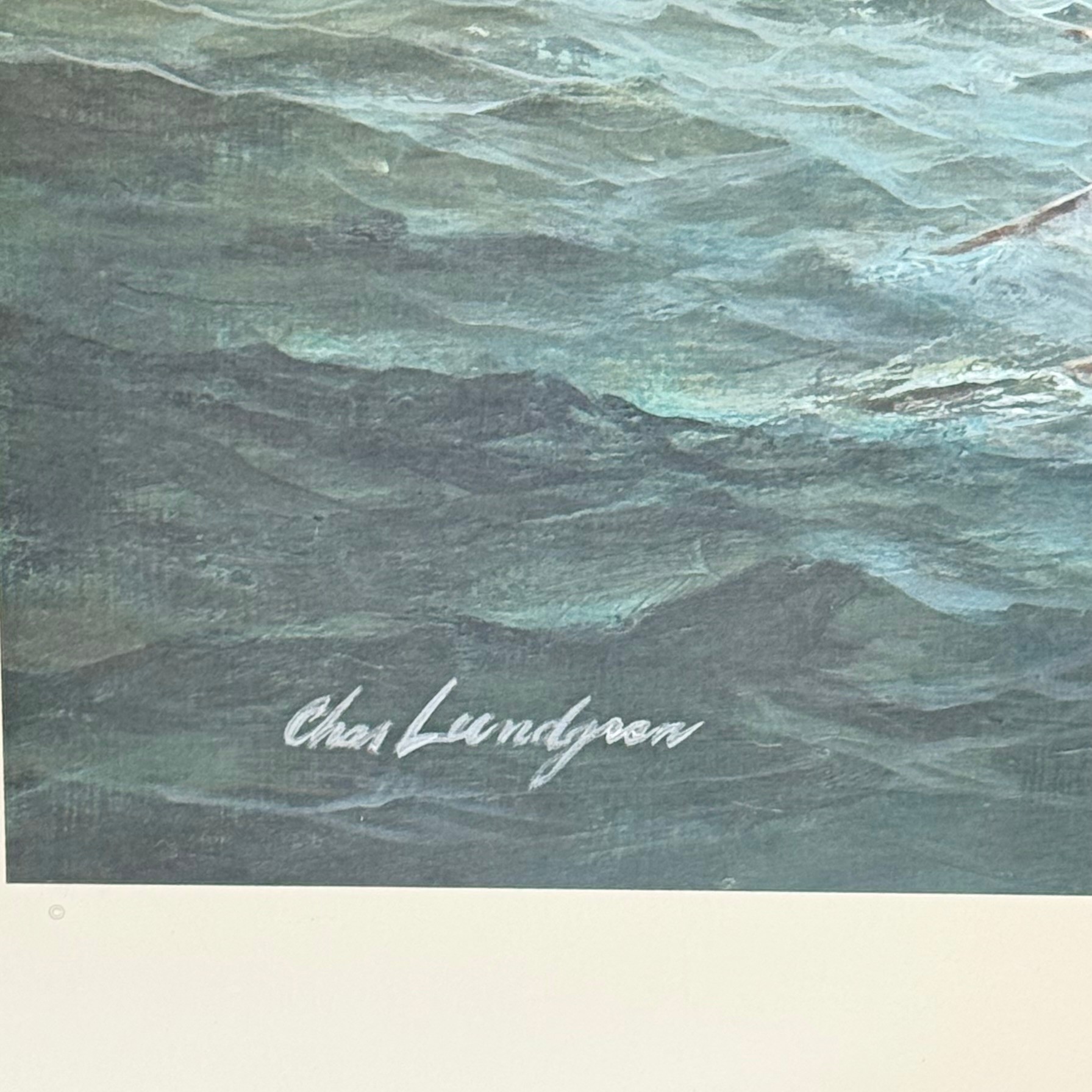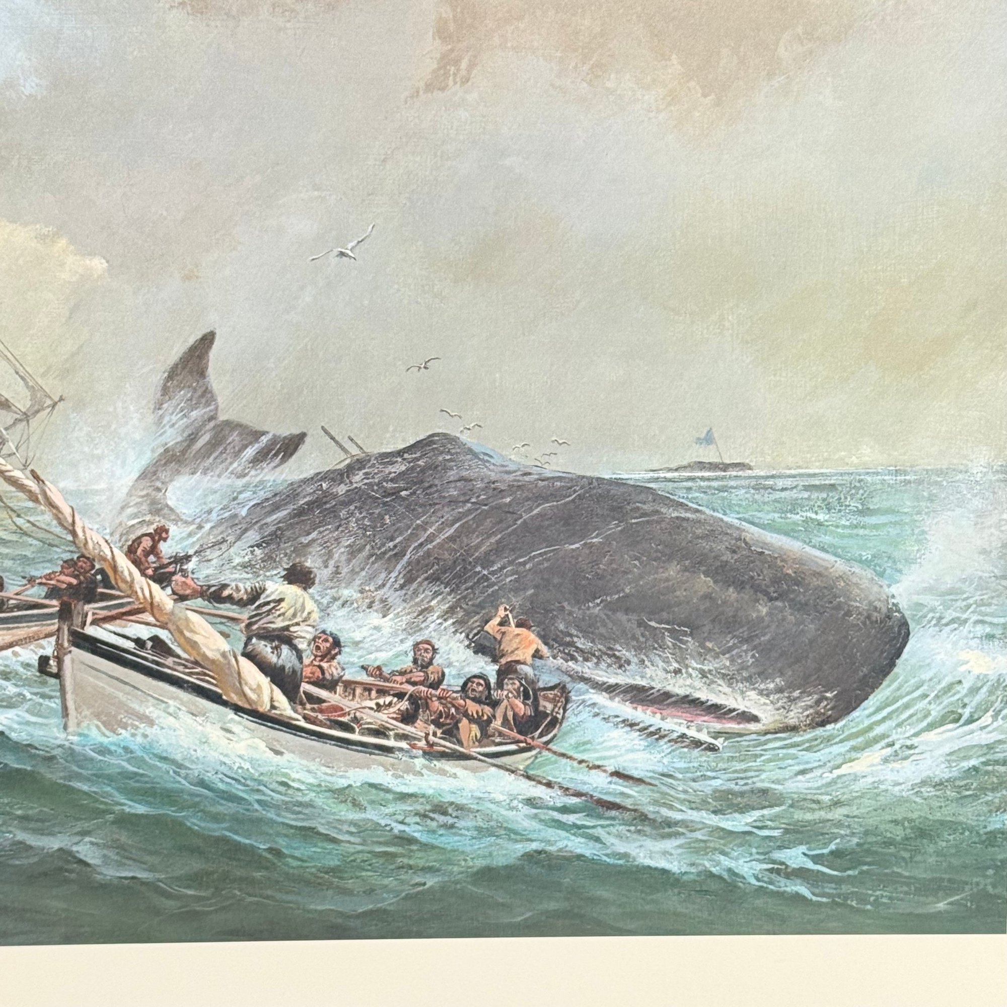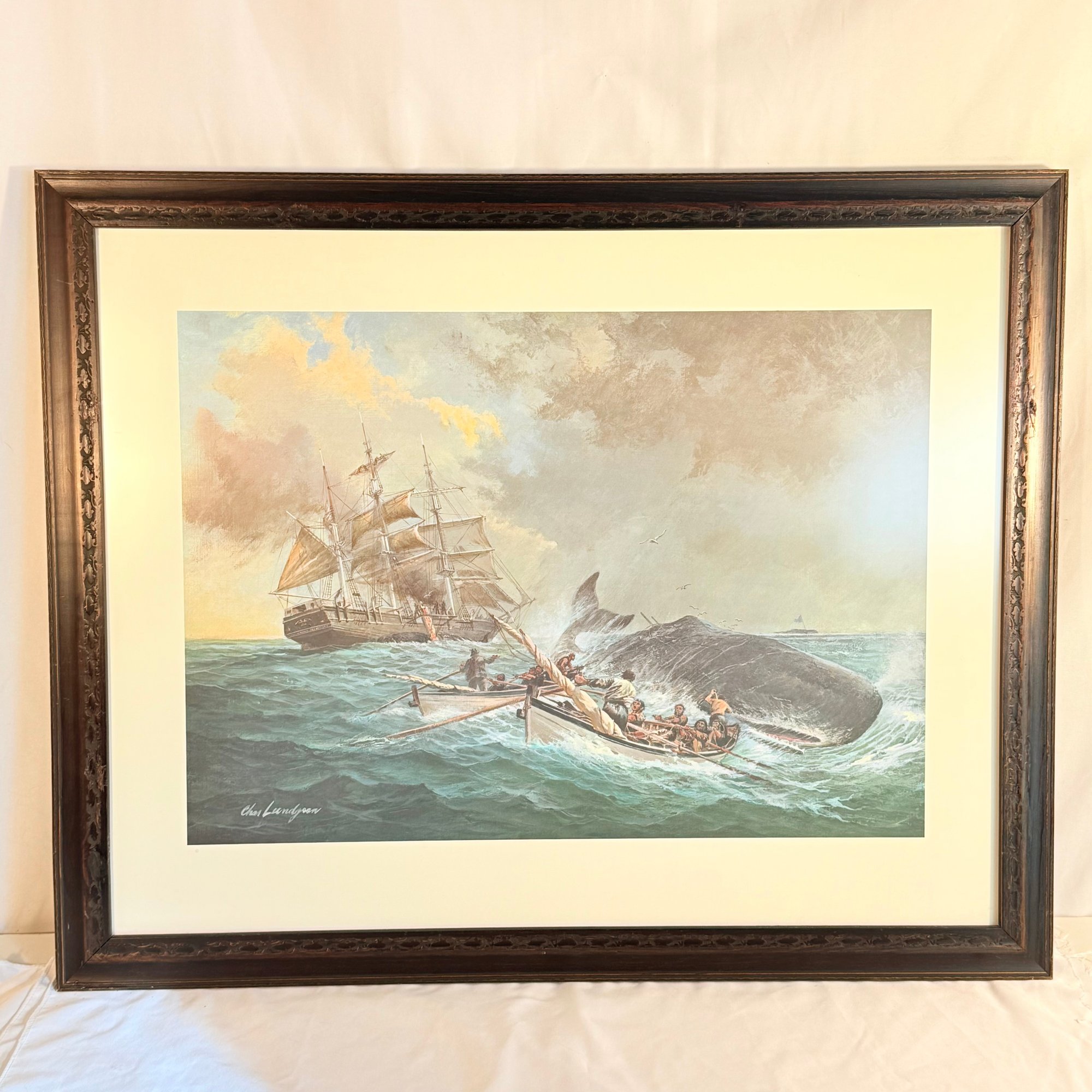 Whaling Lithograph Signed By Charles Lundgren (1911-1988) "The Lancing"