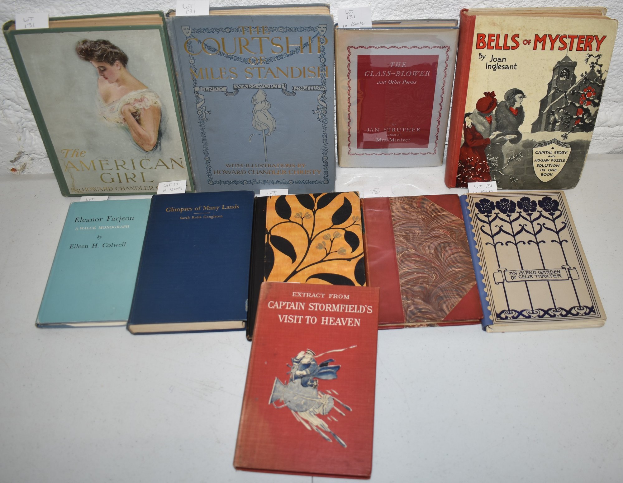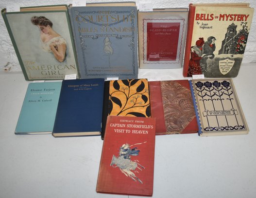 JOY AND POWER BY VAN DYLE 1903 1ST ED, SIGNED, IN 3/4 LEATHER - A RIBAND ON MY REIN BY THURER, SIGNED 1929 - (2) ILLS BY HOWARD CHANDLER CHRISTY - GLIPNSES OF MANY LANDS BY CONGELTON, SIGNED 1915 1ST ED - BELLS MYSTERY - PUZZLE BOOK, C 1935, 1 MISSING PIECE