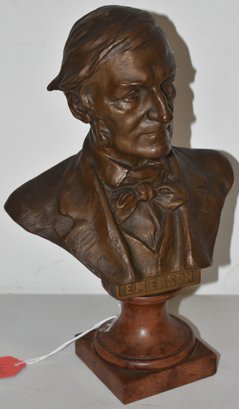 VINTAGE H.MULLER 11 1/2" BRONZE BUST OF RALPH WALDO EMERSON ON BROWN MARBLE PEDESTAL BASE - SIGNED. H. MULLER RIGHT BACK SHOULDER - IMPERFECTIONS
