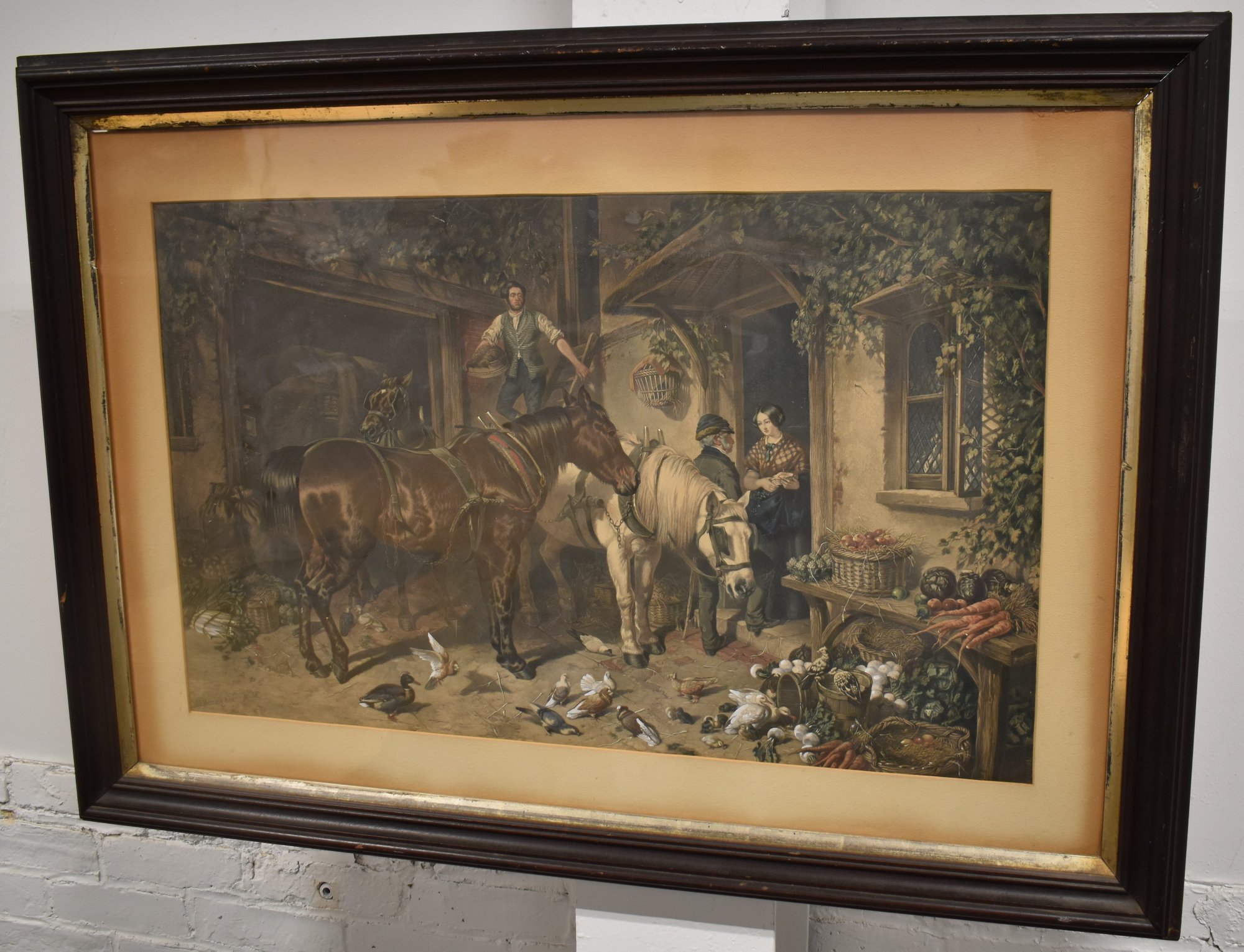 MATTED IN A WALNUT MOLDED FRAME W/ GILT LINER - 20 1/2" X 33 1/2" SIGHT - TONING & IMPERFECTIONS