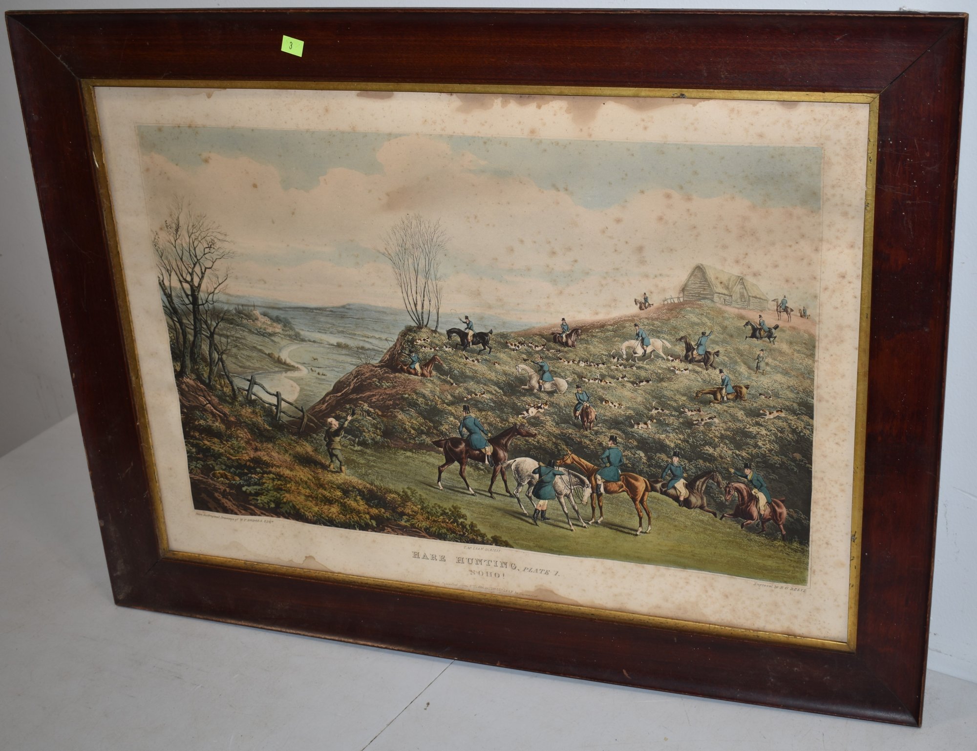 HARE HUNTING SOHO BY W. P. HODGES ENGRAVED BY R.G. REEVE - 15 1/2" X 22 1/4" SIGHT - FRAMED - NO GLASS, TONING, SPOTTING & IMPERFECTIONS