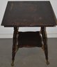 VICTORIAN OAK LAMP TABLE IN OLD BROWN VARNISH W/ MID SHELF ON BALL & CLAW FEET - 29" T - TOP 24" SQ. - WEAR, IMPERFECTIONS, SCRATCHES TO FINISH
