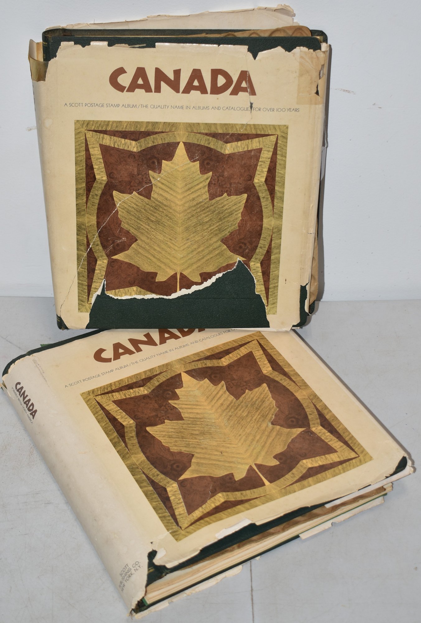SCOTTS SINGLE - COUNTRY ALBUM FOR POSTAGE STAMPS - CANADA MOSTLY - BOTH FAIRLY FULL - IMPERFECTIONS