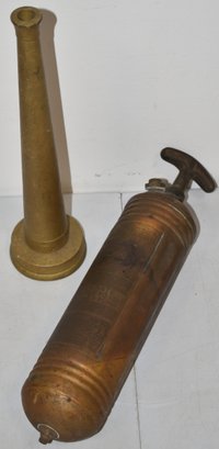 12" BRASS FIRE NOZZLE & BRASS PIYRENE FIRE EXTINGUISHER - WEAR & IMPERFECTIONS