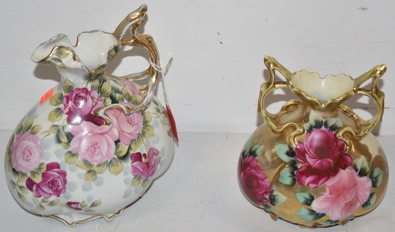 7 1/2" 2 HANDLED VASE & 8 3/4" EWER - WEAR & IMPERECTIONS