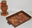 15" WOODEN TRAY & 9" WOODEN VASE W/ GLASS - WEAR