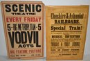 SCENIC THEATRE - VODIL ACTS 22 3/4" X 14" & CHESHIRE & AHUELOT RAILROADS - KEENE AUG 23 1870 - 19 1/2" X 13" - LOSSES & IMPERFECTIONS