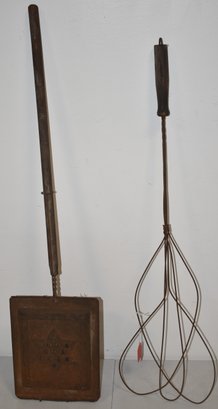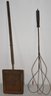 WIRE RUG BEATER & METAL POPCORN POPPER W/ LONG WOODEN HANDLE - WEAR & OXIDATION