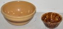 6 1/2" W / BENNINGTON GLAZE & 11" YELLOWARE W/ BROWN BANDS - HAIRLINE - WEAR