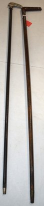 (2) 34 1/2" W/ SILVER PLATED HANDLE & (1) 34 1/2" W/ INLAID HANDLE (CRACKED) - WEAR & IMPERFECTIONS