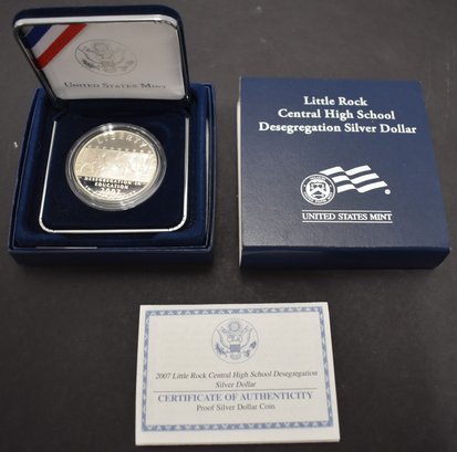 2007 - P LITTLE ROCK DESEGREGATION PROOF SILVER 1 DOLALR COIN