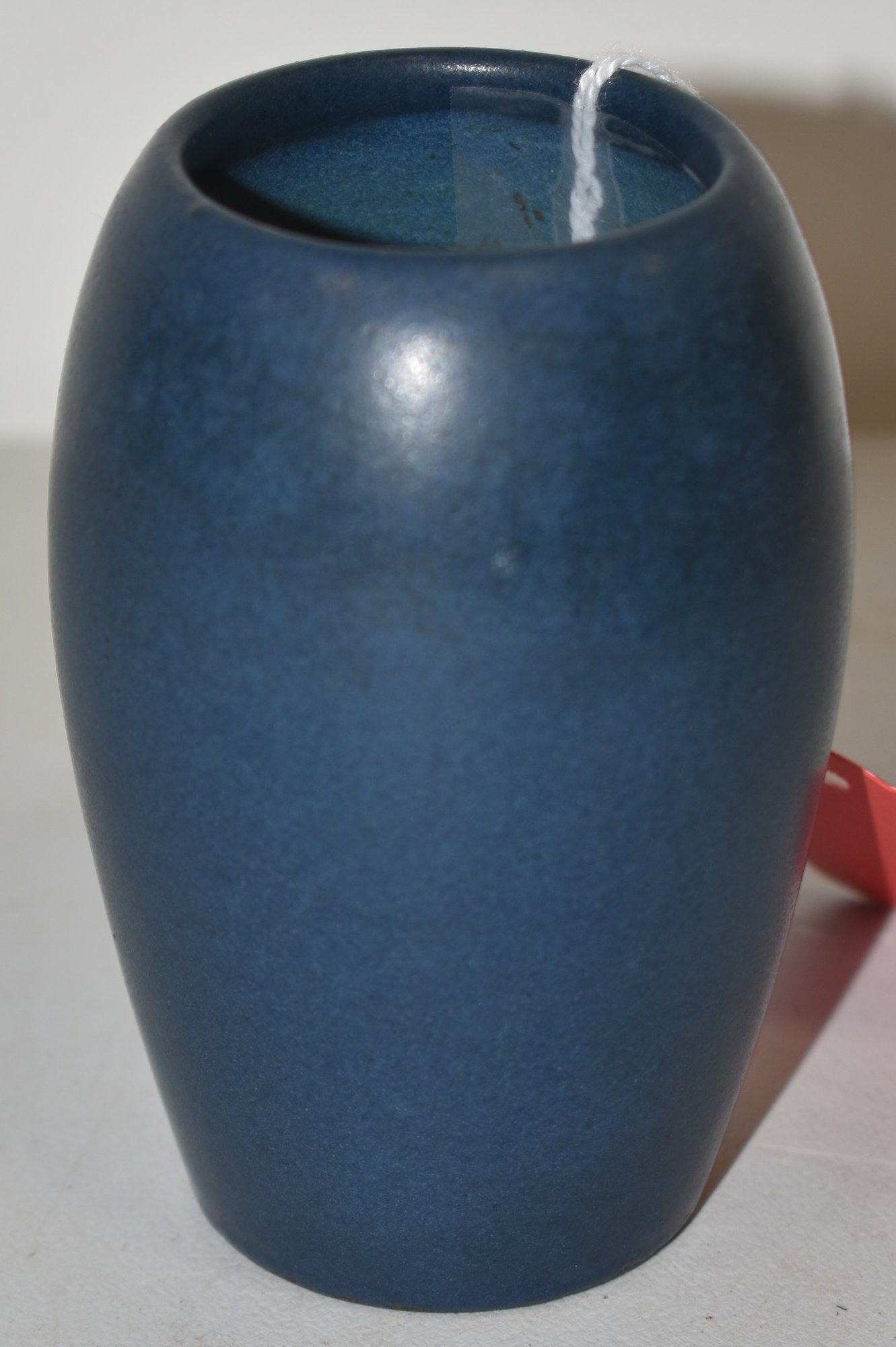 3 1/2" MARBLEHEAD ART POTTERY VASE - COBALT BLUE - IMPRESSED MARK & PAPER LABEL ON BASE - IMPERFECTIONS