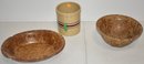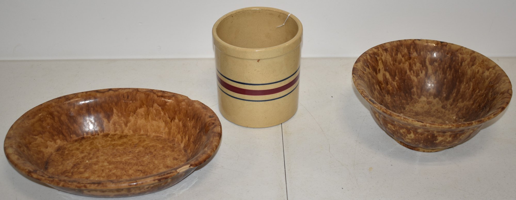 BANDED YELLOWARE CANNISTER 6 1/4" T X 6" D - ROCKINGHAM GLAZED 10 1/4" MIXING BOWL & 13" OVAL VEG - CHIPS, WEAR & IMPERFECTIONS