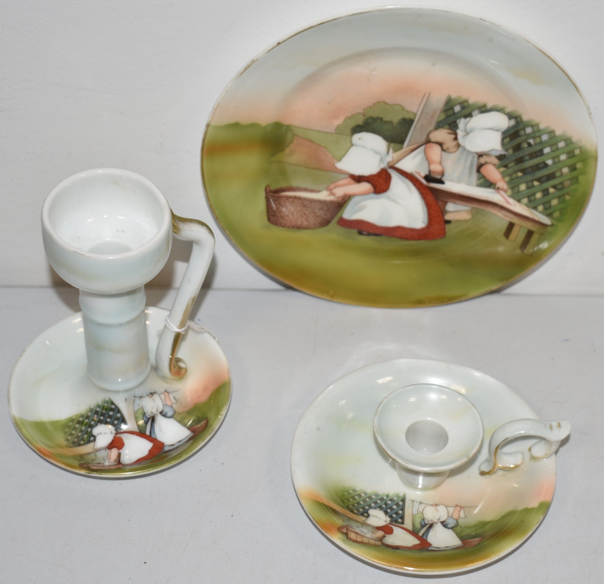 5 1/4" CHAMBERSTICK, LOW CHAMERSTICK & 7 1/2" PLATES - WEAR & IMPERFECTIONS