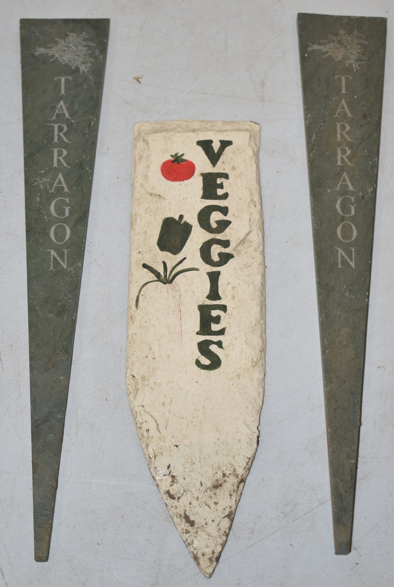 (2)TARRAGON 11 3/4" & (1) VEGGIES - 9 3/4" - WEAR & IMPERFECTIONS