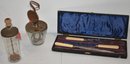 CARVING SET W/ BOX, EGG BEATER - MIXER & GLASS MUDDLER - PRESS JAR - WEAR & IMPERFECTIONS