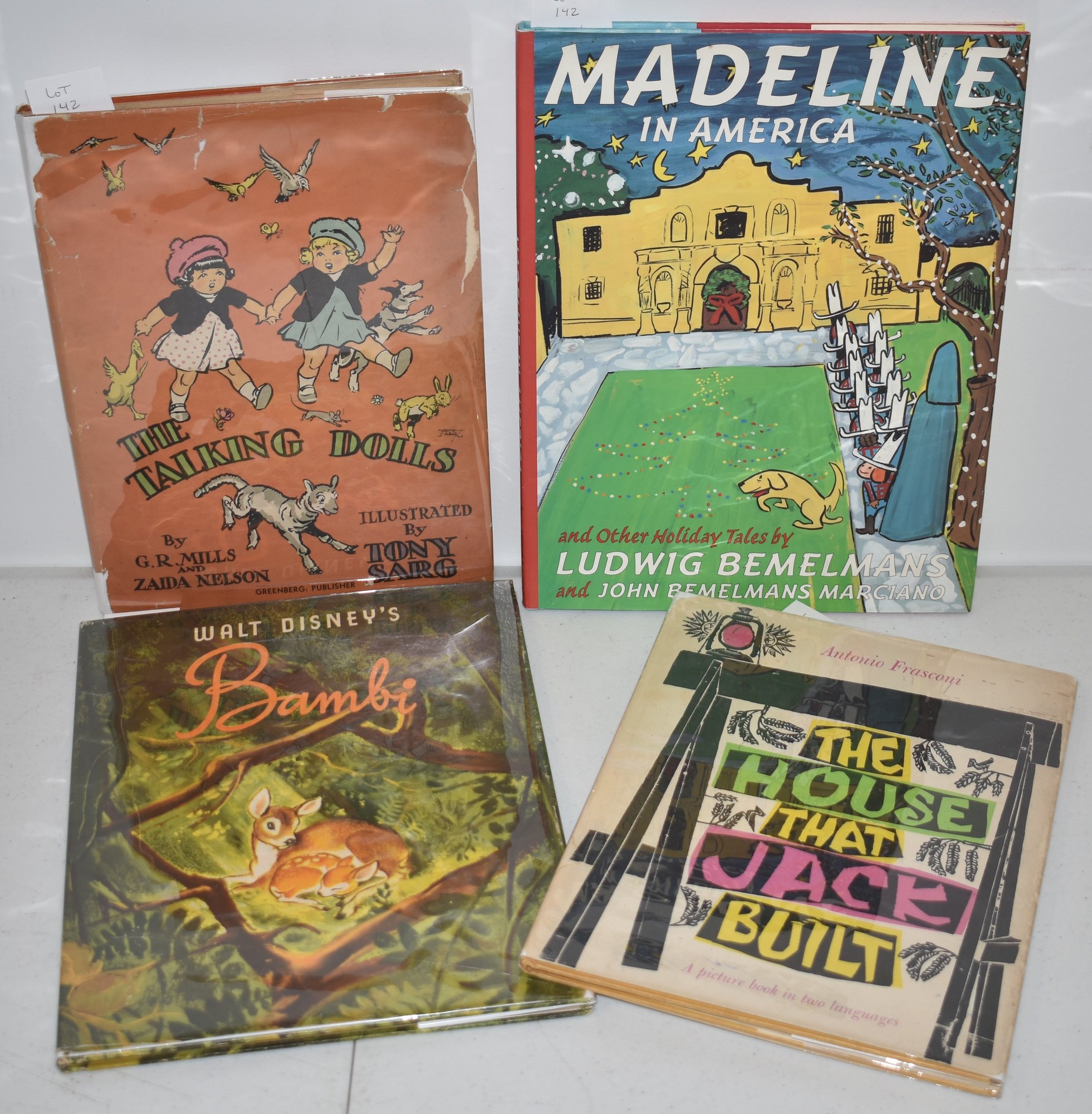 DISNEY'S BAMBI W/ ORIGINAL DJ, 1941 1ST ED - MADELINE IN AMERICA, SIGNED BY THILLS - HOUSE THAT JACK BUILT BY FRANSCONI 1ST ED - TALKING DOLLS BY MILLS & NELSON, ILL BY SARG 1910