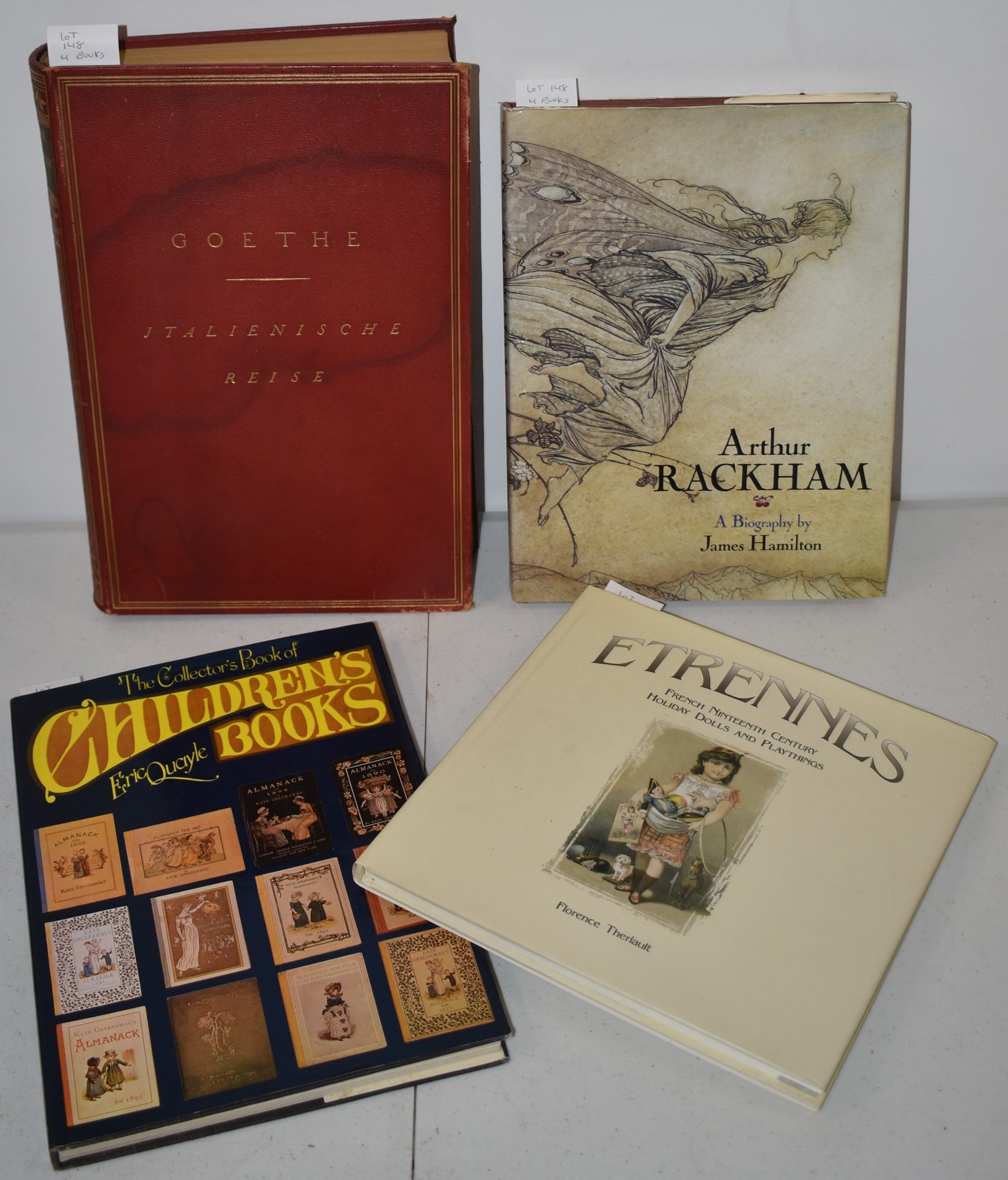 ARTHUR RACKMAN BIO 1990 1ST ED W/ DJ - CHILDRENS BOOK BY QUAYLE 1971, 1ST ED W/ DJ - GOETHES ITAIENISCHE RIESE, 1925, LEPZIG IN FULL LEATHER