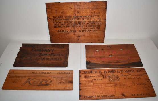 (5) VINTAGE WOODEN ADVERTISING CRATE PANELS