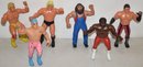 1980'S TITAN SPORTS LLC, 1984 WWF WRESTLING FIGURES - HILLBIILY JIM, JUNK YARD DOG, (2) HULK HOGAN, BRUTUS BEEFCAKE & GREG THE HAMMER VALENTINE - WEAR