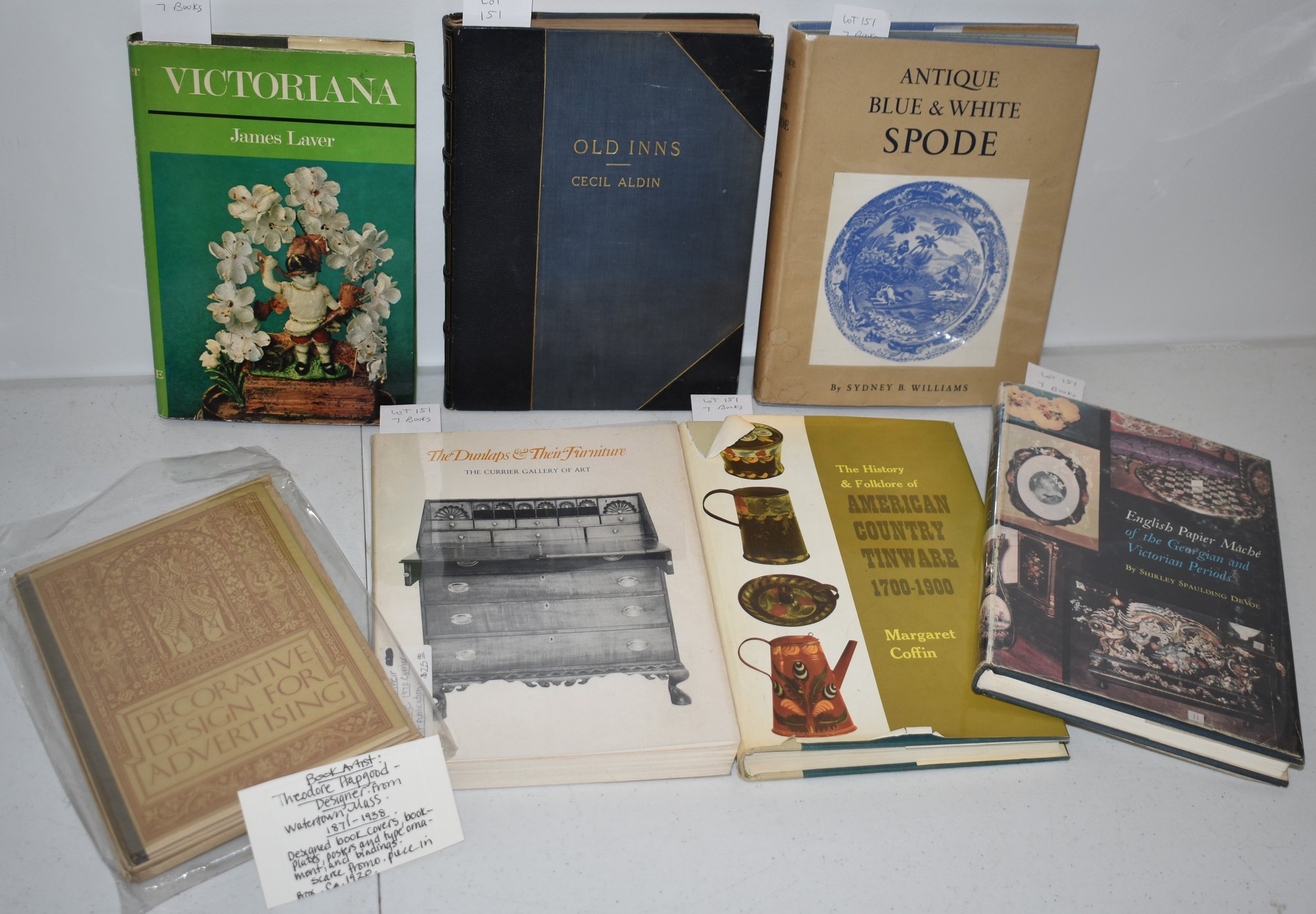 DECORATIVE DESIGN FOR ADVERTISING - THEODORE HAPGOOD IN BOX C 1920 - OLD INNS BY CECIL ALDIN, 1923 LONDON : HEINEMANN IN 3/4 LEATHER